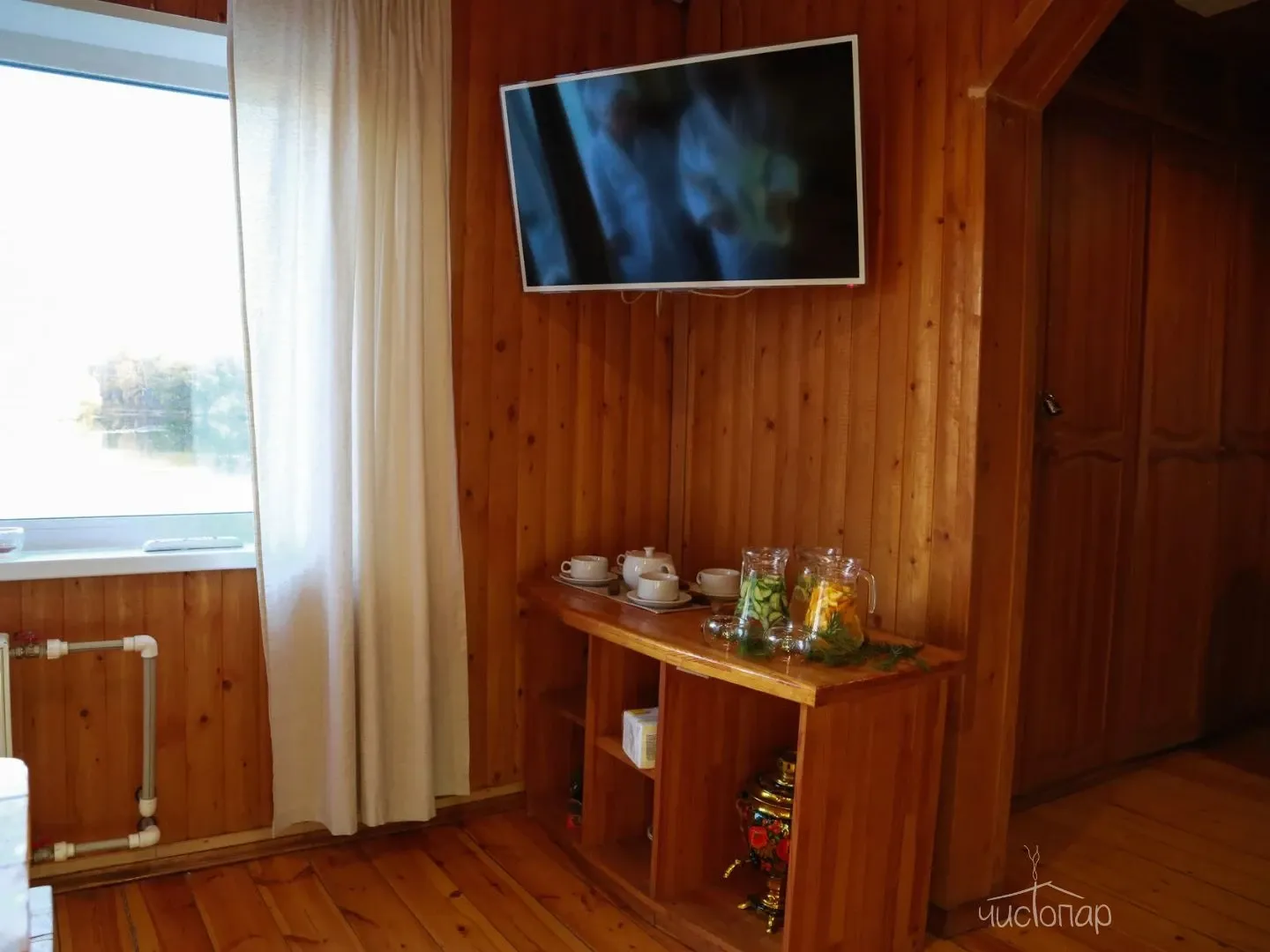 Для Вашего комфорта мы полностью обновили комнату отдыха, сделали панорамное окно с видом на реку и лес.