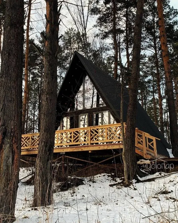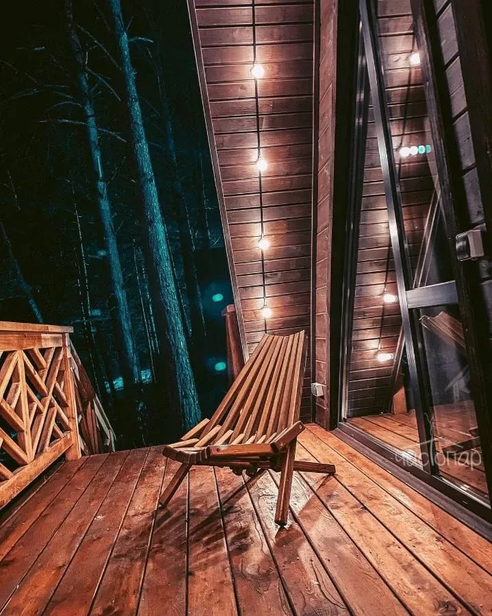 — Уютная зона отдыха с панорамным остеклением и видом на сосновый бор;