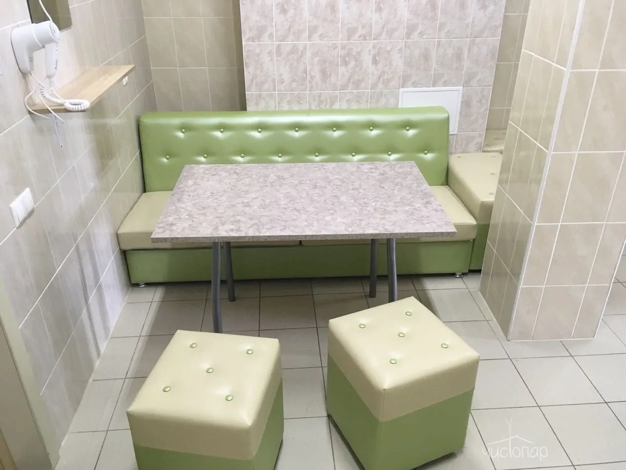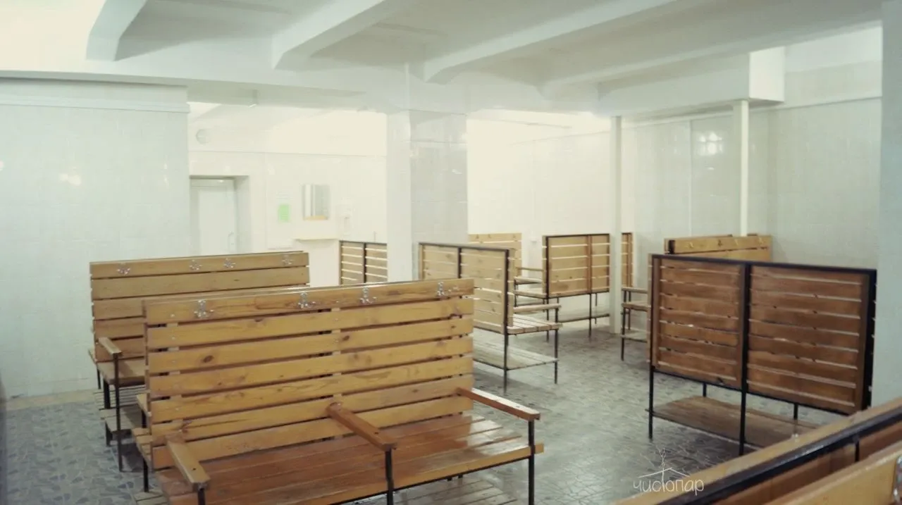 В отделениях первого разряда: парная-живой пар, парная-сауна, помывочное отделение с душевыми кабинами, купель (110х150), парильщик-массажист. Вместимость до 40 чел.