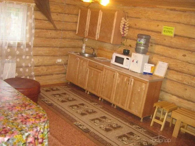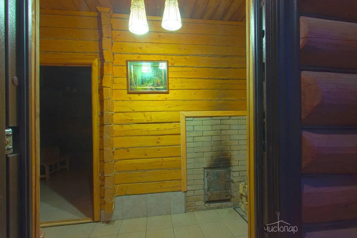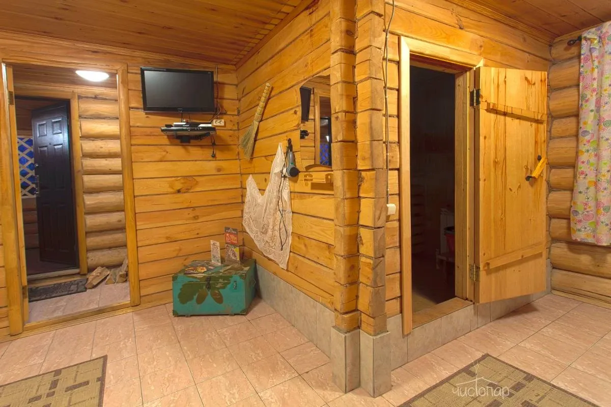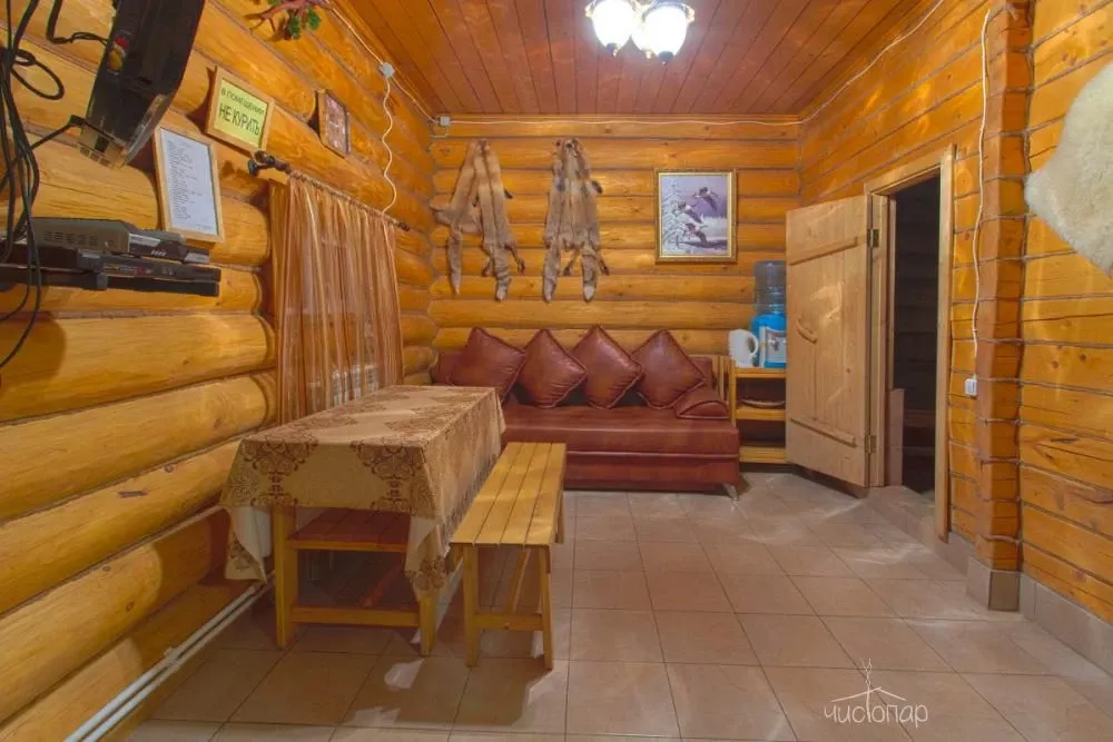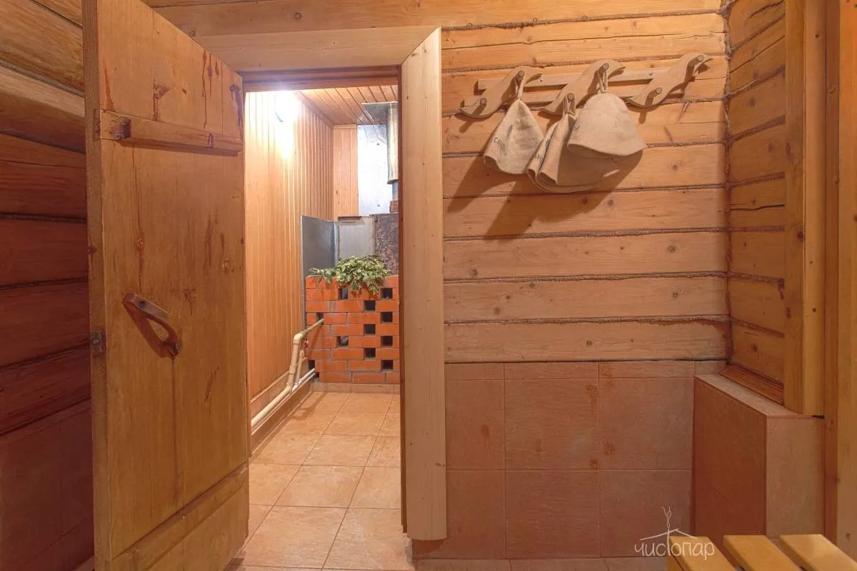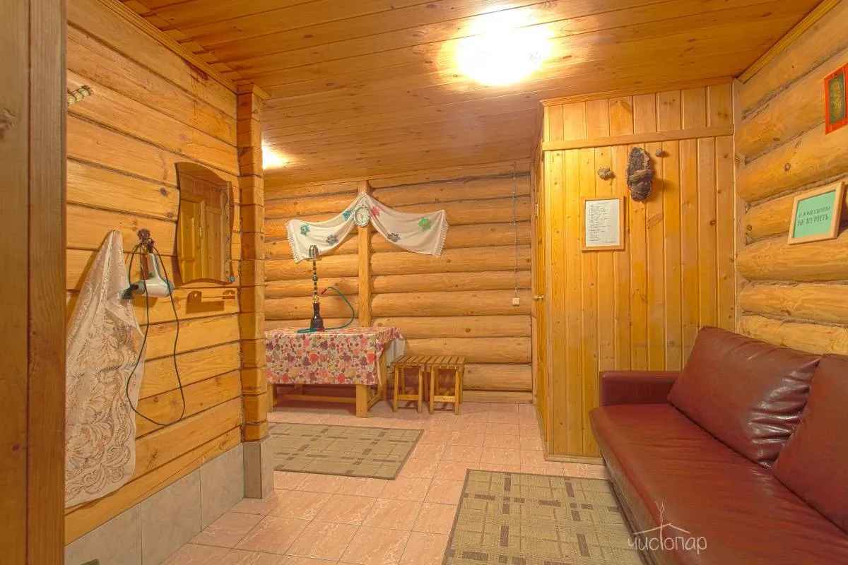 • Средняя баня на дровах сделана в охотничьем стиле.
