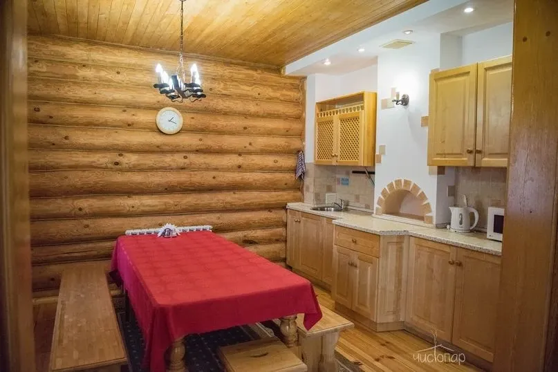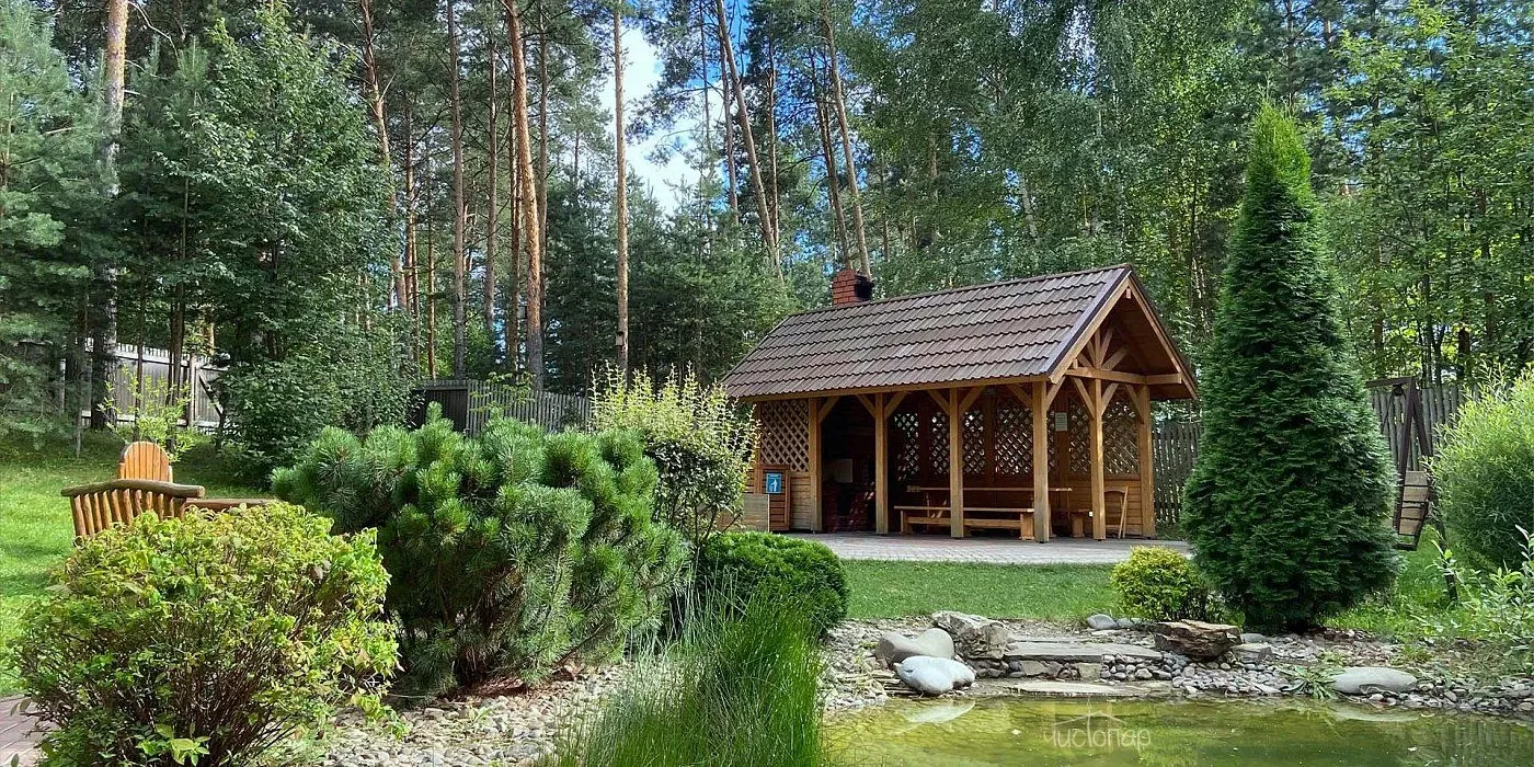 Дом «Пасечника» с собственной большой огороженной территорией находится в лесной зоне. Территория 10 соток. В доме есть 3 комнаты, также имеется душевая и веранда. На территории находится баня, беседка-барбекю, купель, качели, лежаки, декоративный пруд.