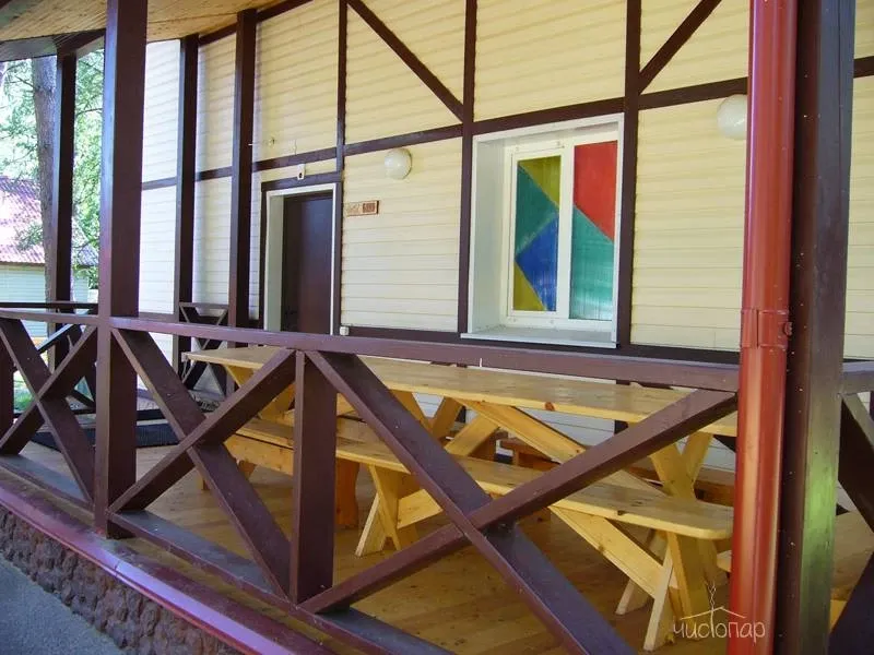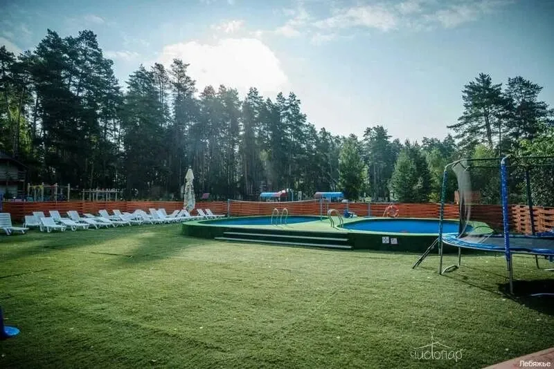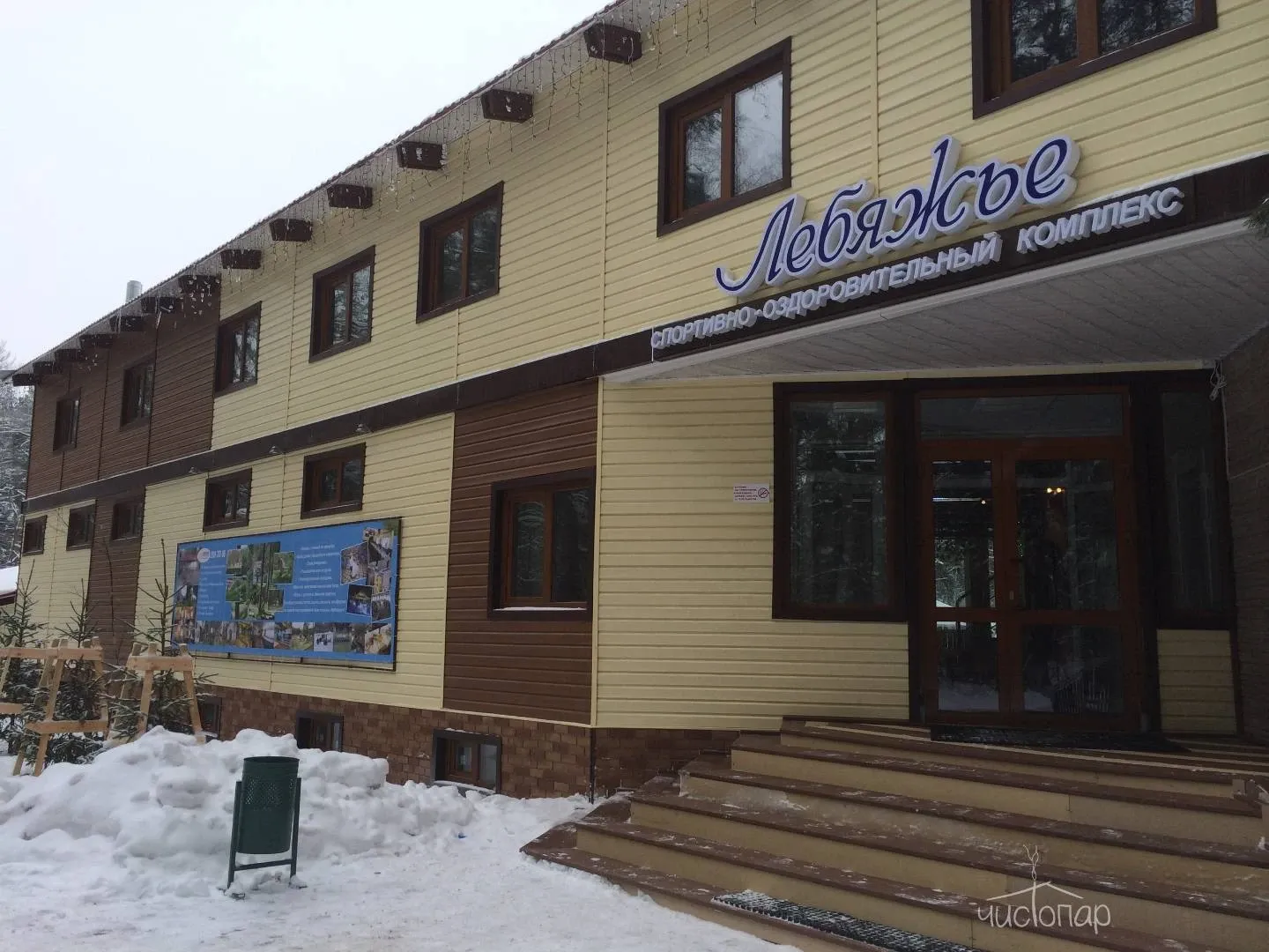 Банный комплекс на базе отдыха «Лебяжье» - двухэтажное строение с отделкой под рустик. На первом этаже расположена открытая веранда, парная, бассейн, помывочное отделение, санузлы и просторный холл, оснащенный плазменным телевизором, холодильником, микроволновой печью и электрическим чайником. На втором этаже расположены уютные спальные комнаты. Вместит в себя компанию до 18 человек. Банные принадлежности, охраняемая автостоянка, поле для игры в мяч, шезлонги, уютное кафе на территории базы отдыха, мангалы для самостоятельного приготовления шашлыков.
