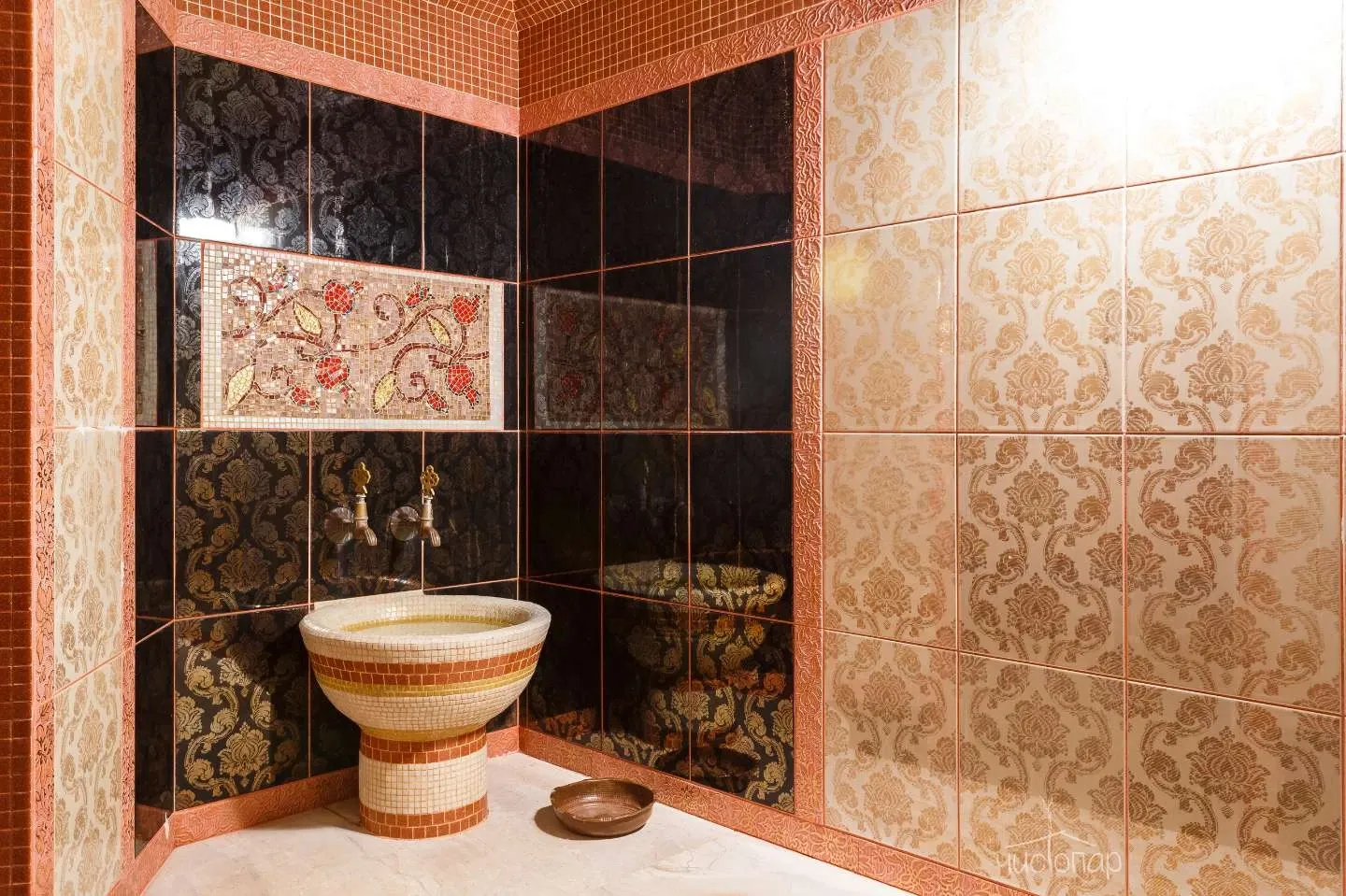 Сразу у входа гостей встречает эксклюзивное оформление: картины, мозаика, дизайнерские арт-компоненты, в парной – неизменно вкусный и целебный аромат