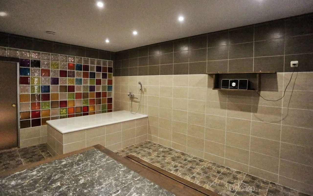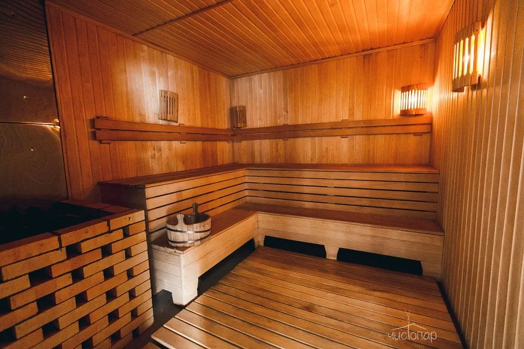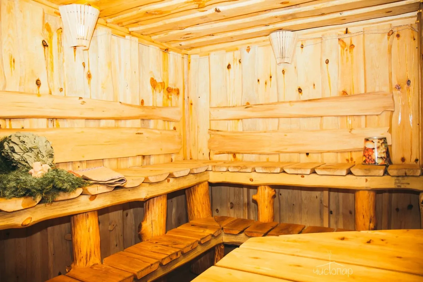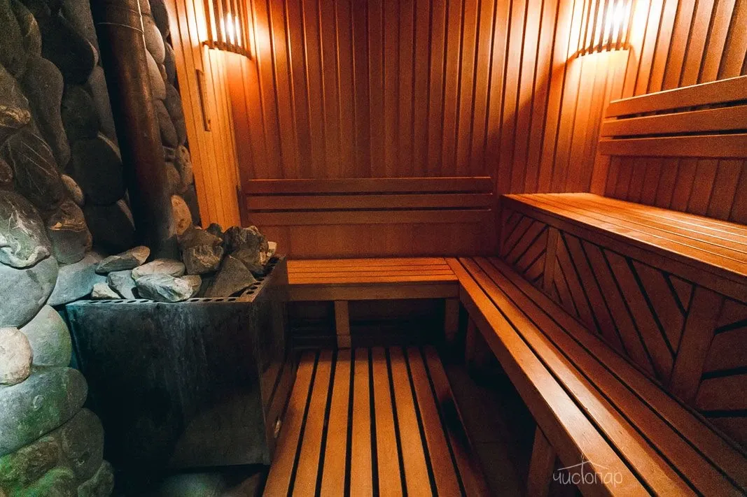 Изюминка банного комплекса – бани с татарским колоритом, топятся дровами. В комплексе работают профессиональные банщики, каждому гостю – меню веников. Четыре парных – янтарная, восточный хаммам, большая и малая. Янтарная парная – это настоящая русская баня с ароматом липы, отделанная деревом. Хаммам – это мягкие температуры, высокая влажность и ароматерапия. Такой формат парения отлично подойдет для СПА-программ, масок и пилингов.
