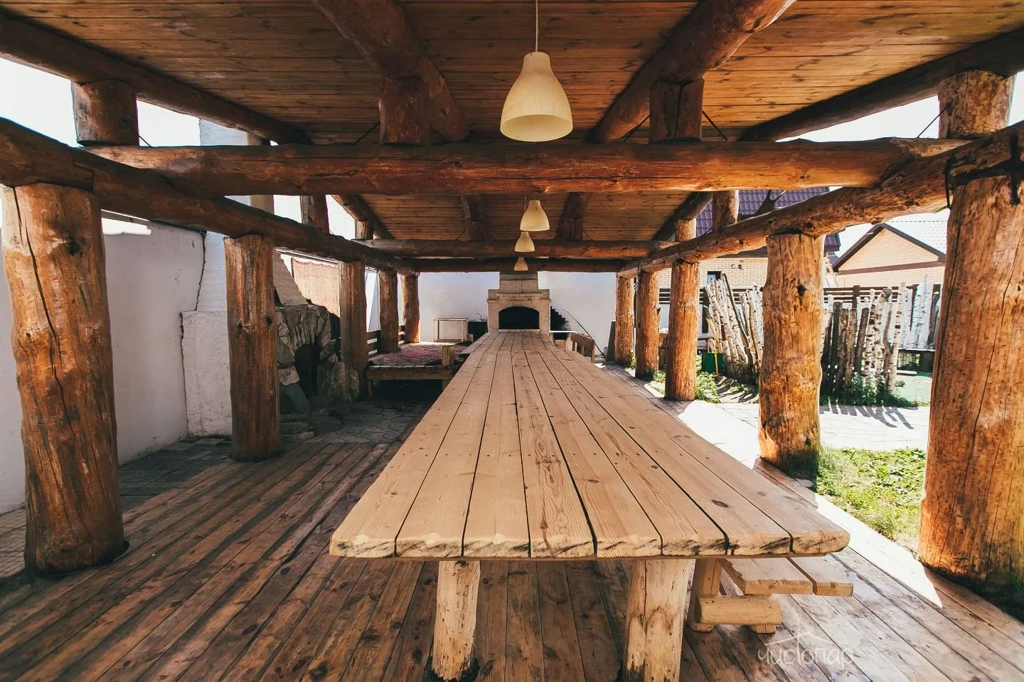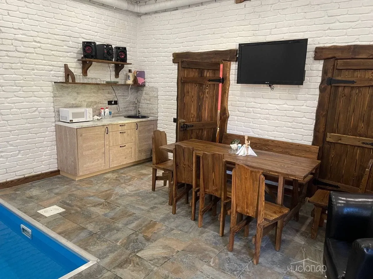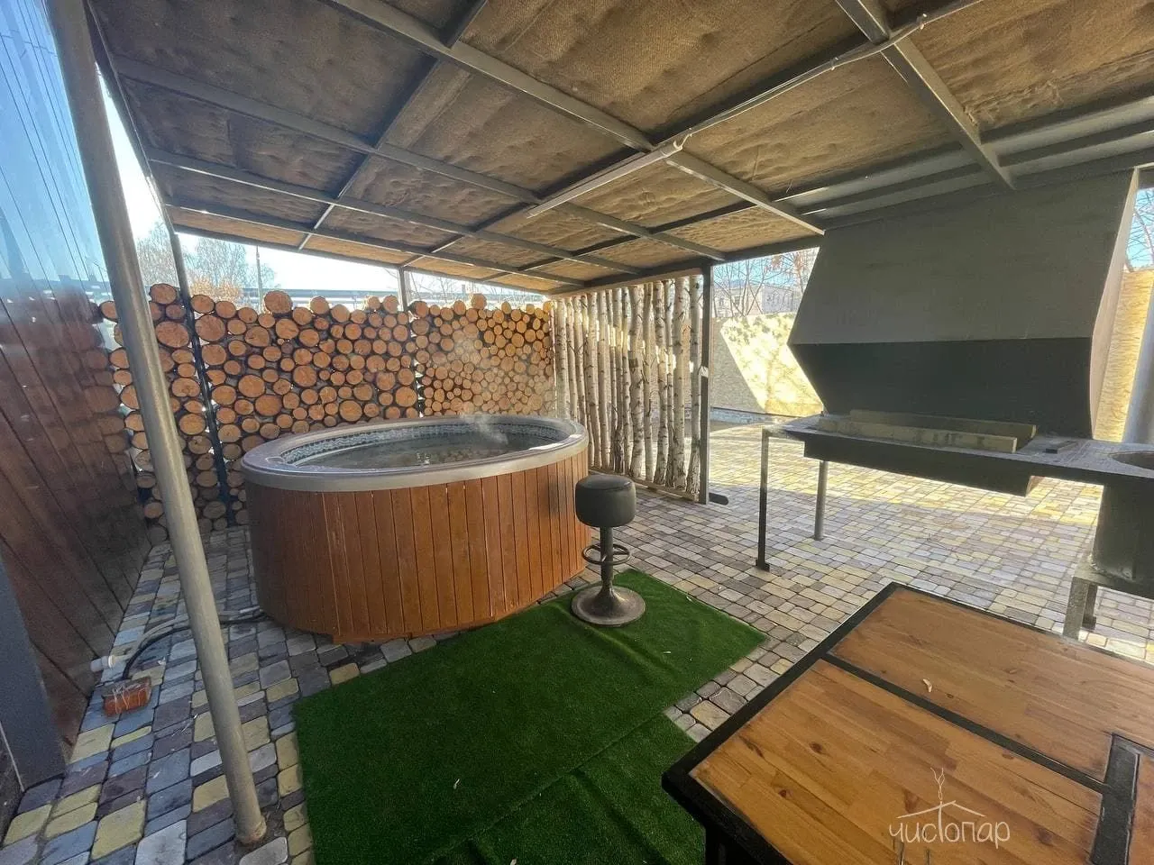 Стол на 4-8 человек,открытый бассейн на улице,уличная беседка,парковка на 6-8 машин.
