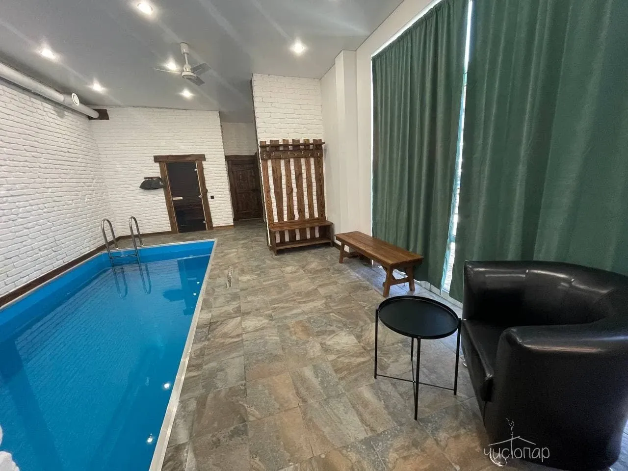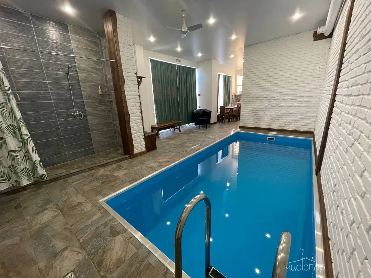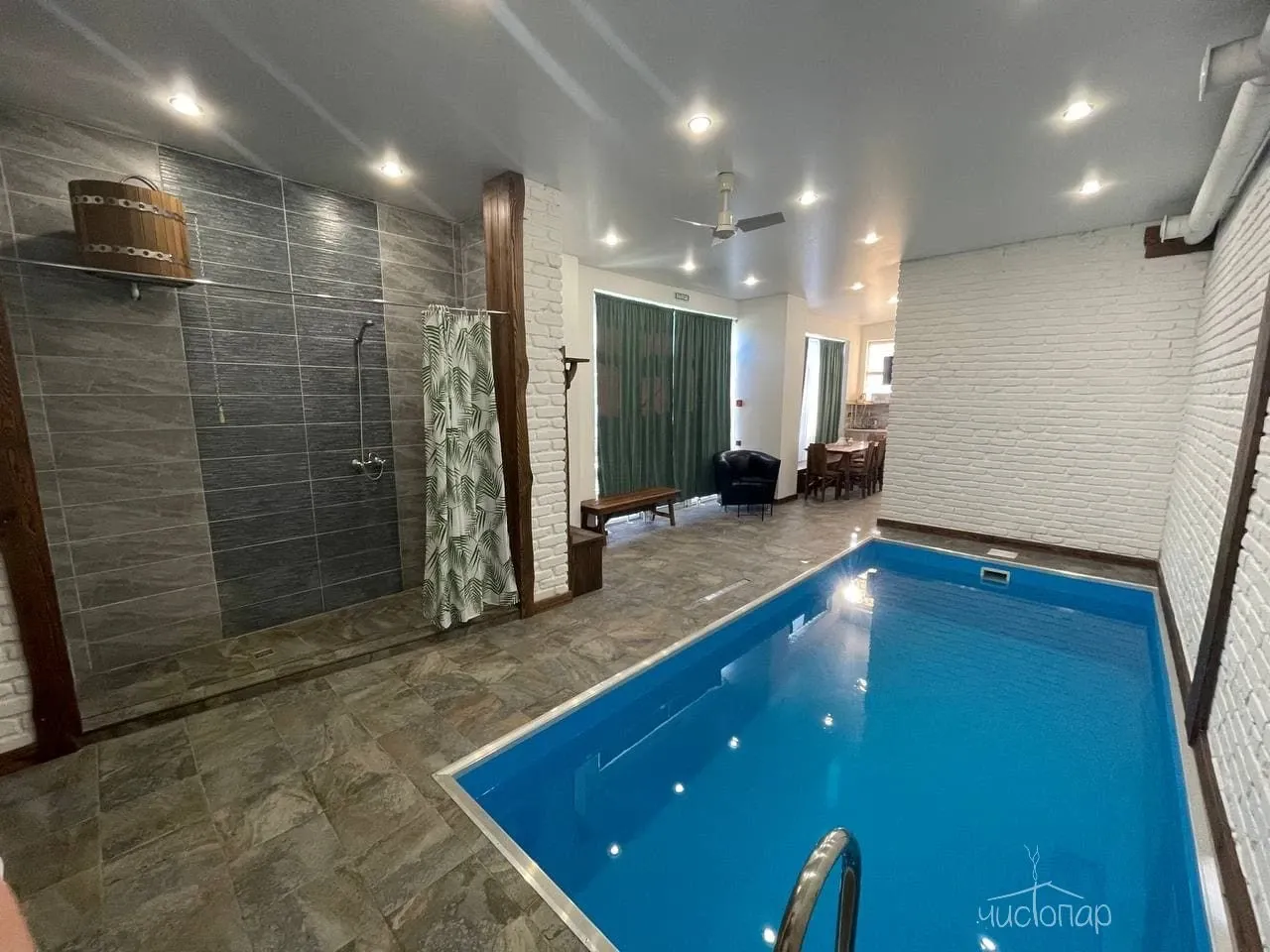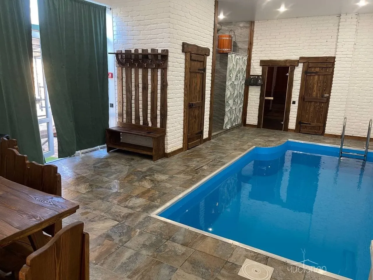 Стол на 4-8 человек,открытый бассейн на улице,уличная беседка,парковка на 6-8 машин.
