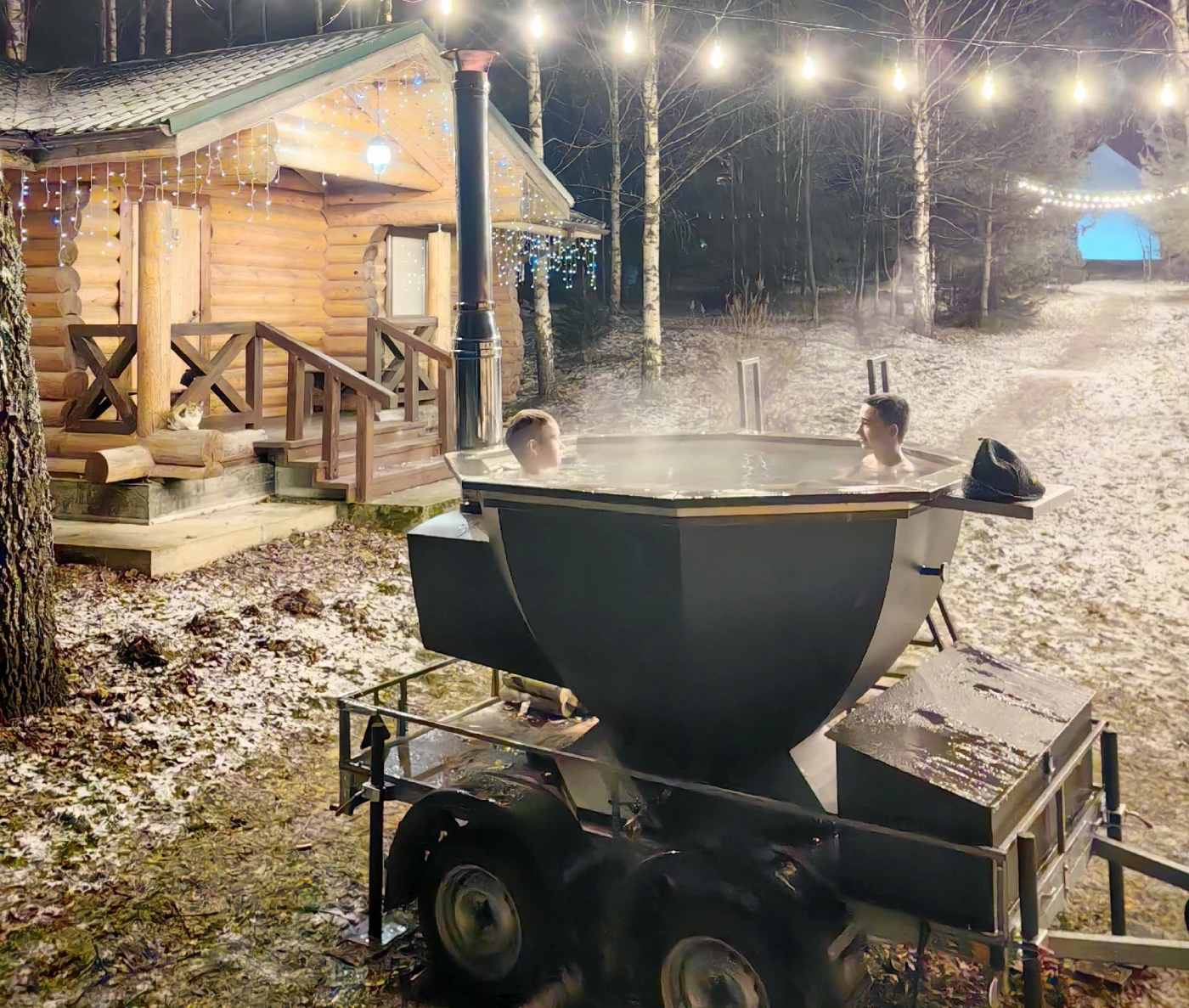 Обычные семейные посиделки и встречи с друзьями - совместное оздоровительное парение в банном чане. А сопровождаться такой отдых будет душевными разговорами, теплым чаем и успокаивающим запахом лечебных трав, наполняющих чан. Арендовать можно с Барбекю-домиком или с кинотеатром.