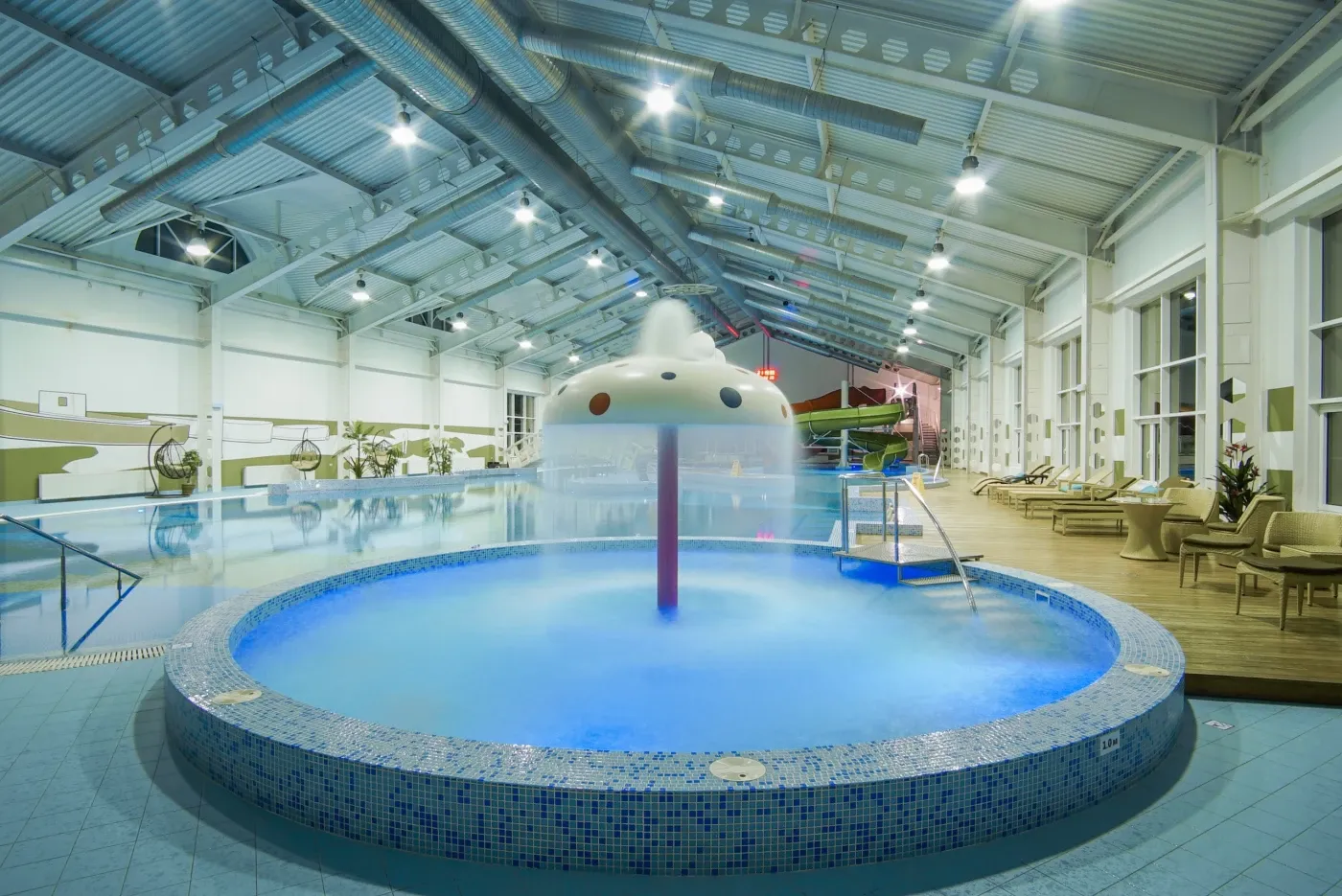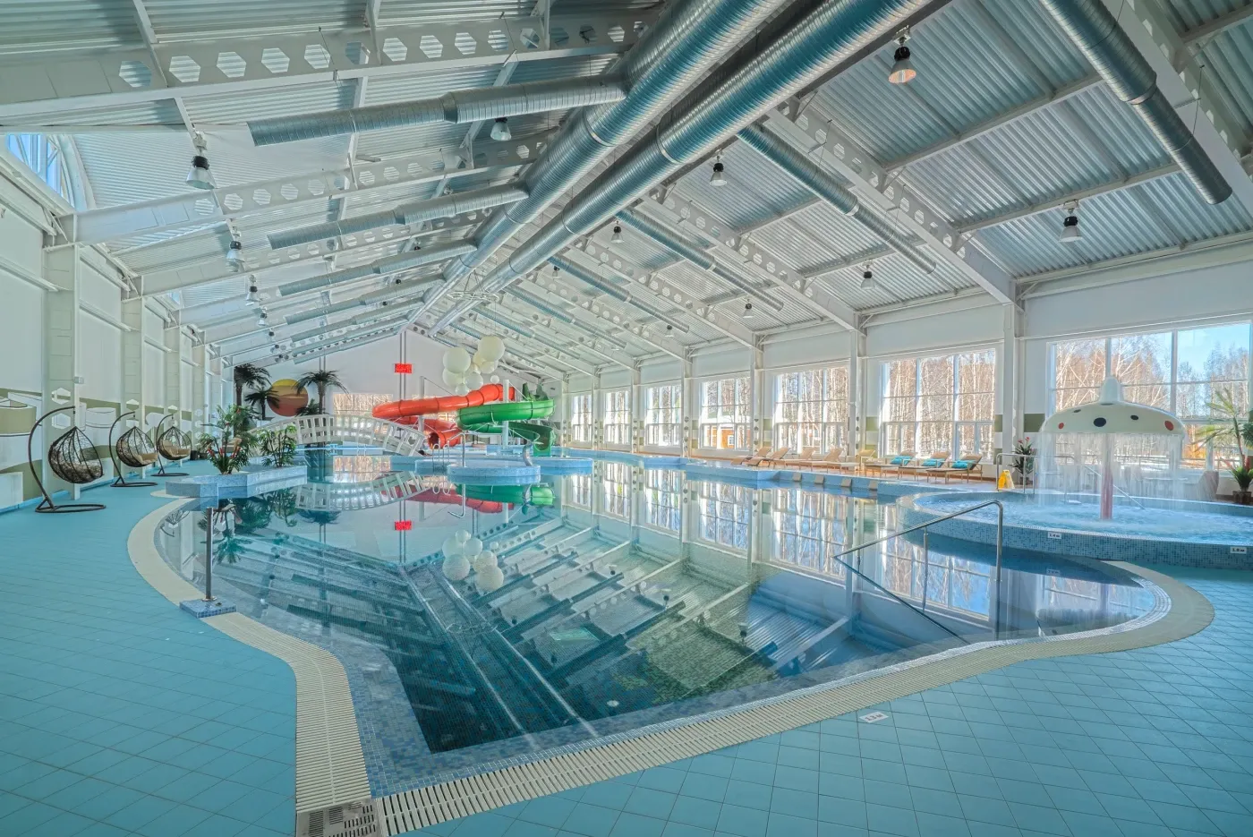 • 50-метровый бассейн с аква-аттракционами и детской зоной