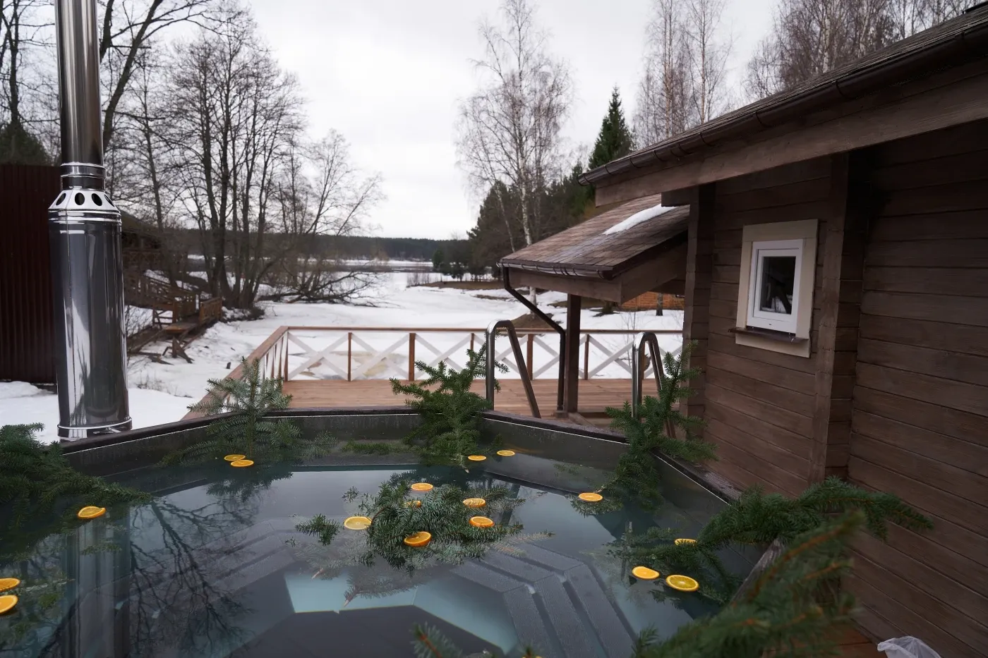 • Сибирская баня с подогреваемым Сибирским чаном на открытой террасе