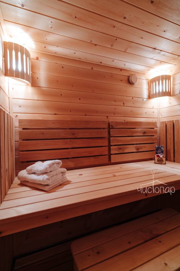 Для вашего комфортного отдыха наша баня оборудована функциональной просторной парной со всеми необходимыми аксессуарами (обливные ведра, ковши, черпаки и др.). Здесь есть уютная комната отдыха, где с комфортом может разместиться 5-6 человек. Также в помещении нашей бани есть душ и отдельный санузел.