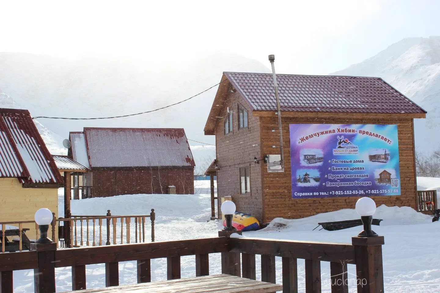 Территория отдыха "Жемчужина Хибин" " находится в самом живописном месте на берегу озера Малый Вудъявр, в самом центре туристических маршрутов гор Хибин, всего в 7 км от города. Идеальное место для спокойного и размеренного отдыха в самом сердце гор Хибин.