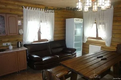 Травяной чай, караоке, кухня, диваны для отдыха, стол и стулья из сруба, веники для парки, необходимое белье для личного использования