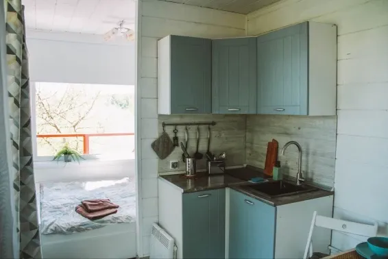 Уютная студия с мини-кухней на берегу залива. Комфортно могут разместиться 4 взрослых.