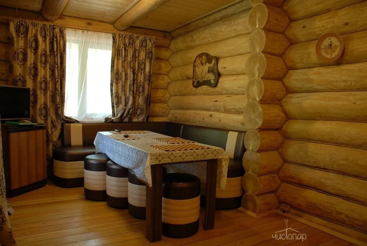 В комплекс Усадьбы входят 12 комфортабельных номеров и 8 отдельных деревянных домов. Все дома и комнаты выполнены только из самых качественных материалов и украшены оригинальными деталями.