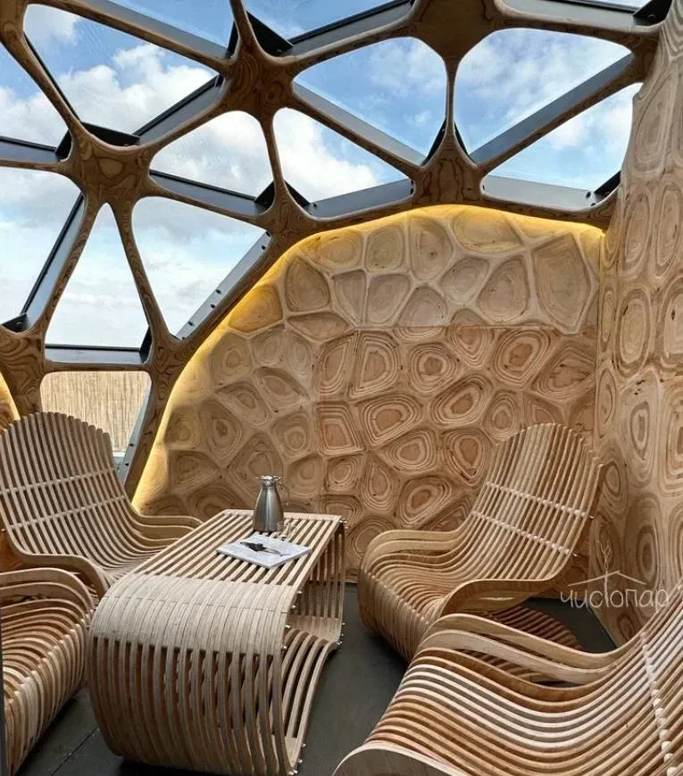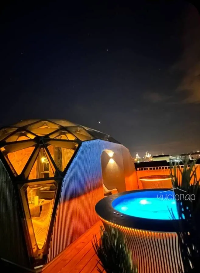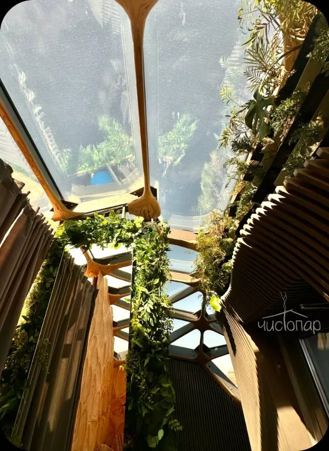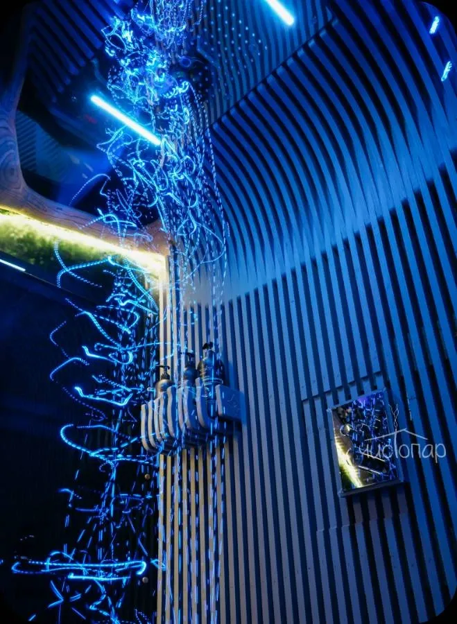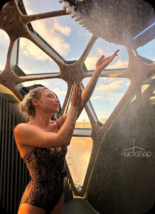 SkySpa - баня впечатлений, размещена на крыше. Тут есть парная, зона отдыха, душевая. Есть 2 купили: холодная и горячая. В горячей купили есть различные режимы гидромассажа. Есть банщица Алиса (голосовой помощник), которая включена в режим парения. С помощью нее можно включать спецэффекты