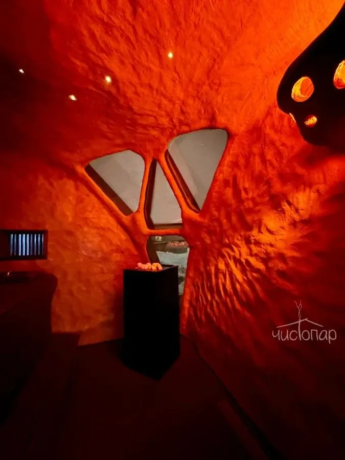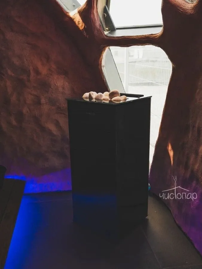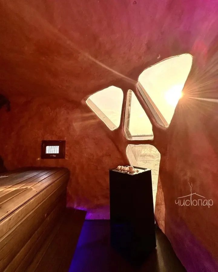 Особенная парная: Удивительная печь, создающая насыщенный мягкий пар/ Автоматическая программа парения с голосовым управлением/ Отделка стен глиной создает атмосферу естественной гармонии/ Душ Виши/ Панорамное окно.