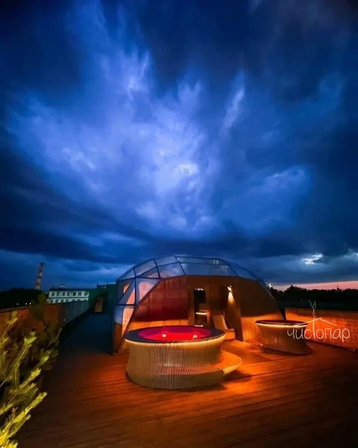 SkySpa – это футуристический спа-комплекс, расположенный на крыше здания в исторической части Коломны.