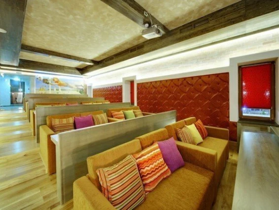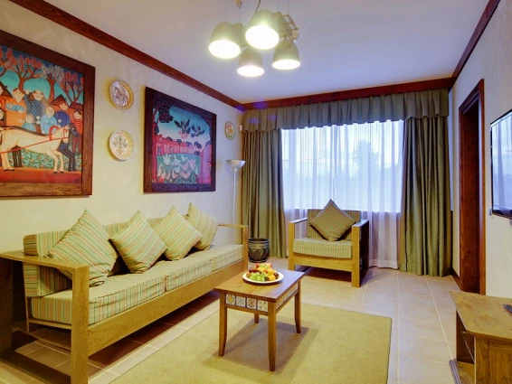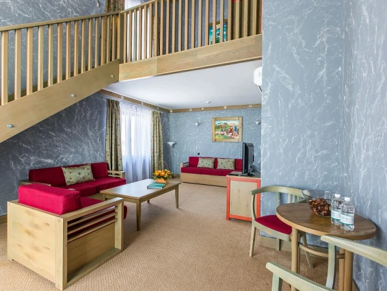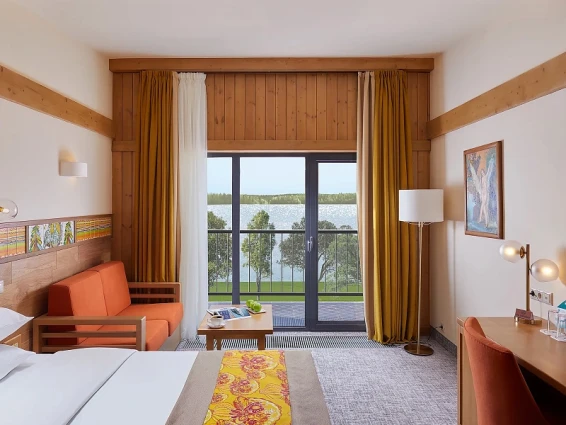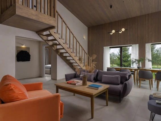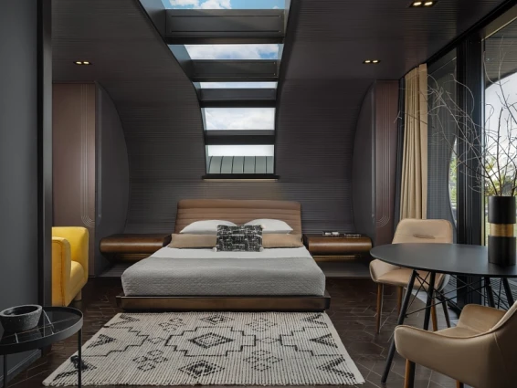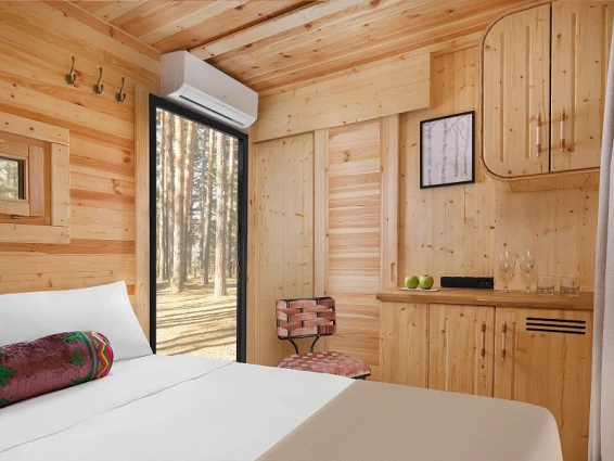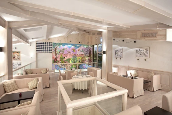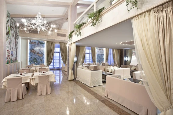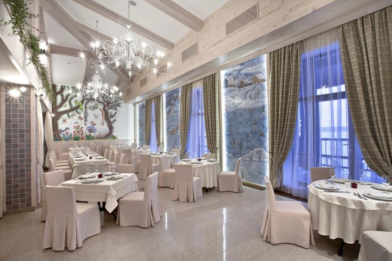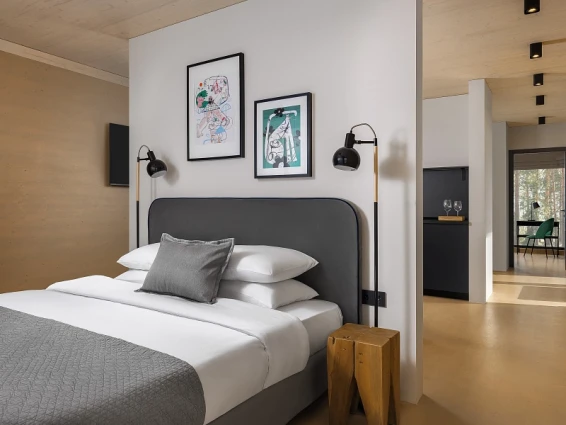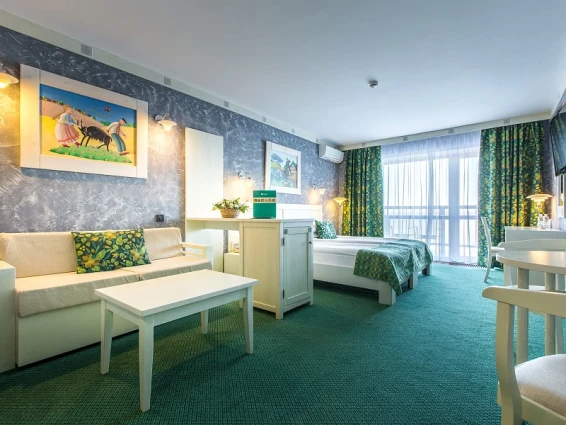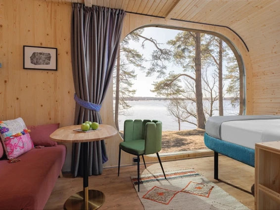 Также на территории находится арт-парк с различными арт-объектами и маршрутами с аудиогидом. Интерьеры отеля оформлены в стиле наивного искусства, что создает уникальную атмосферу.