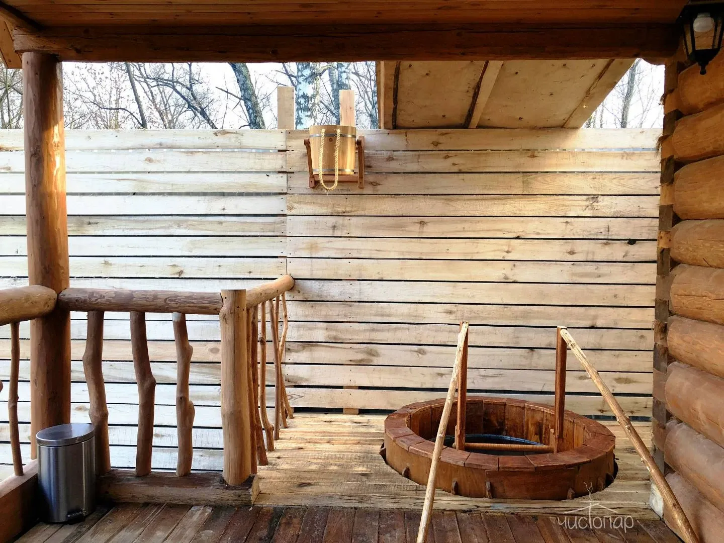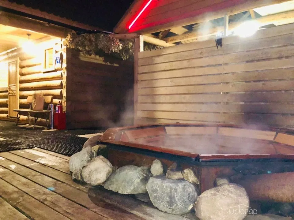 банный чан под открытым небом с теплой водой (до 40 градусов), в котором можно понежиться даже в позднюю осень и зимой;