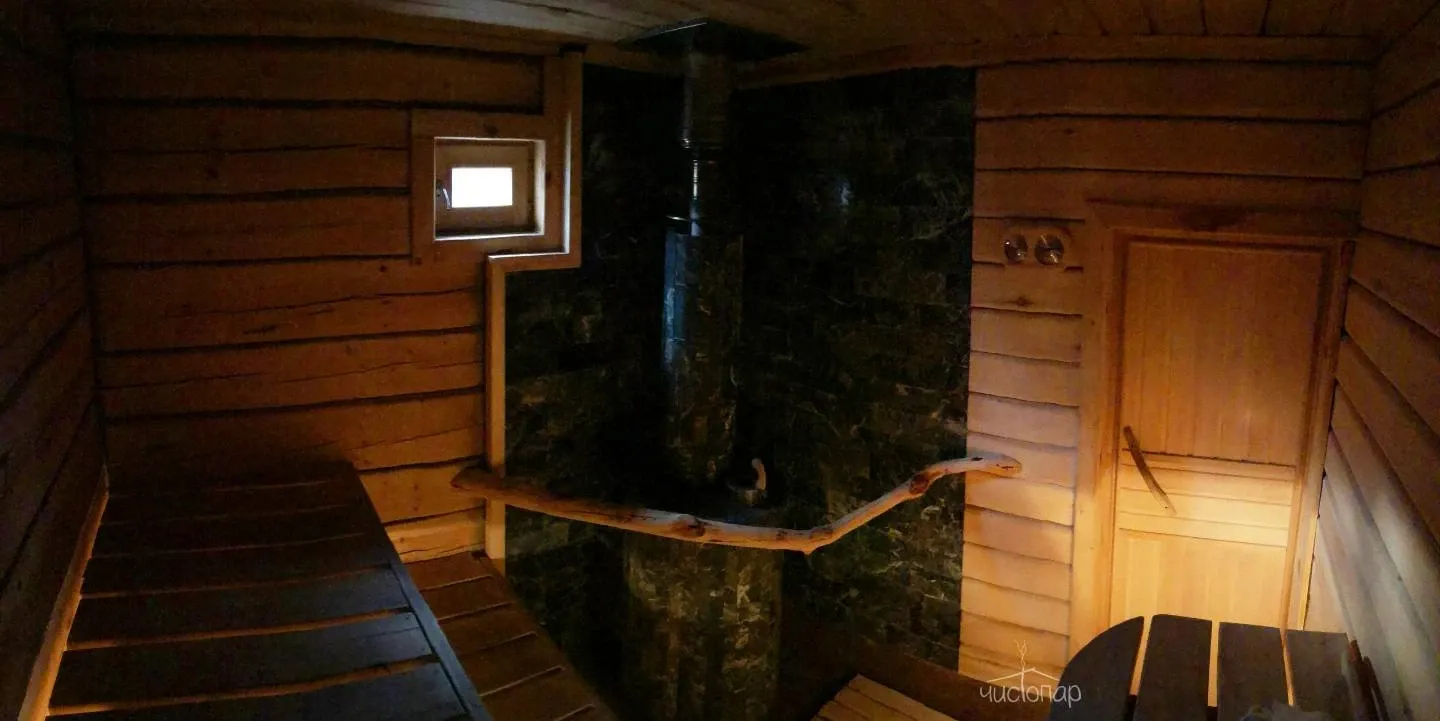 Комплекс располагается на отдельной закрытой территории и построен в виде традиционного деревянного сруба, который оснащен русской парной, оборудованной закрытой печью-каменкой на дровах, что наделяет ее пар дополнительными целебными качествами, причем не только для тела, но и психоэмоционального состояния. Кроме того, в комплексе имеются: