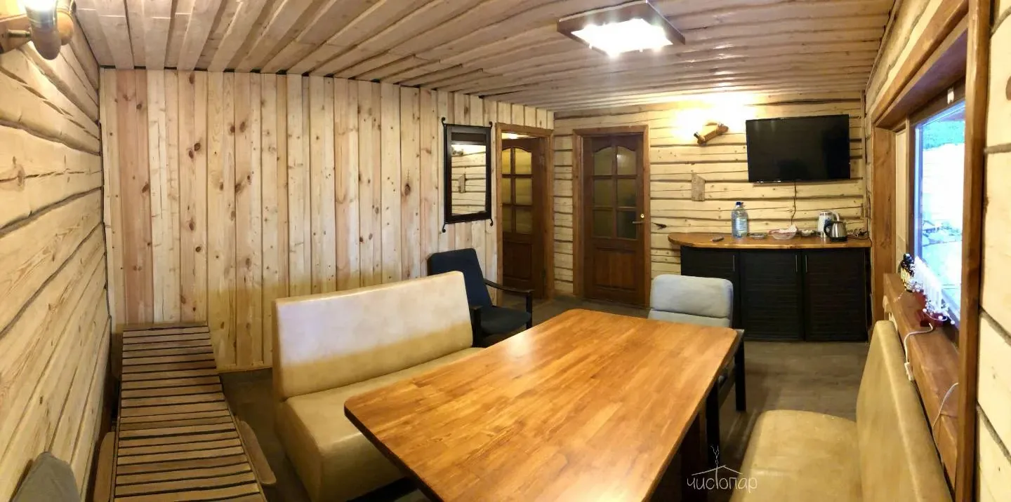просторная гостевая зона с большой плазменной панелью, обеденным столом, а также мягкой мебелью для максимально комфортного времяпровождения за беседами с близкими людьми;