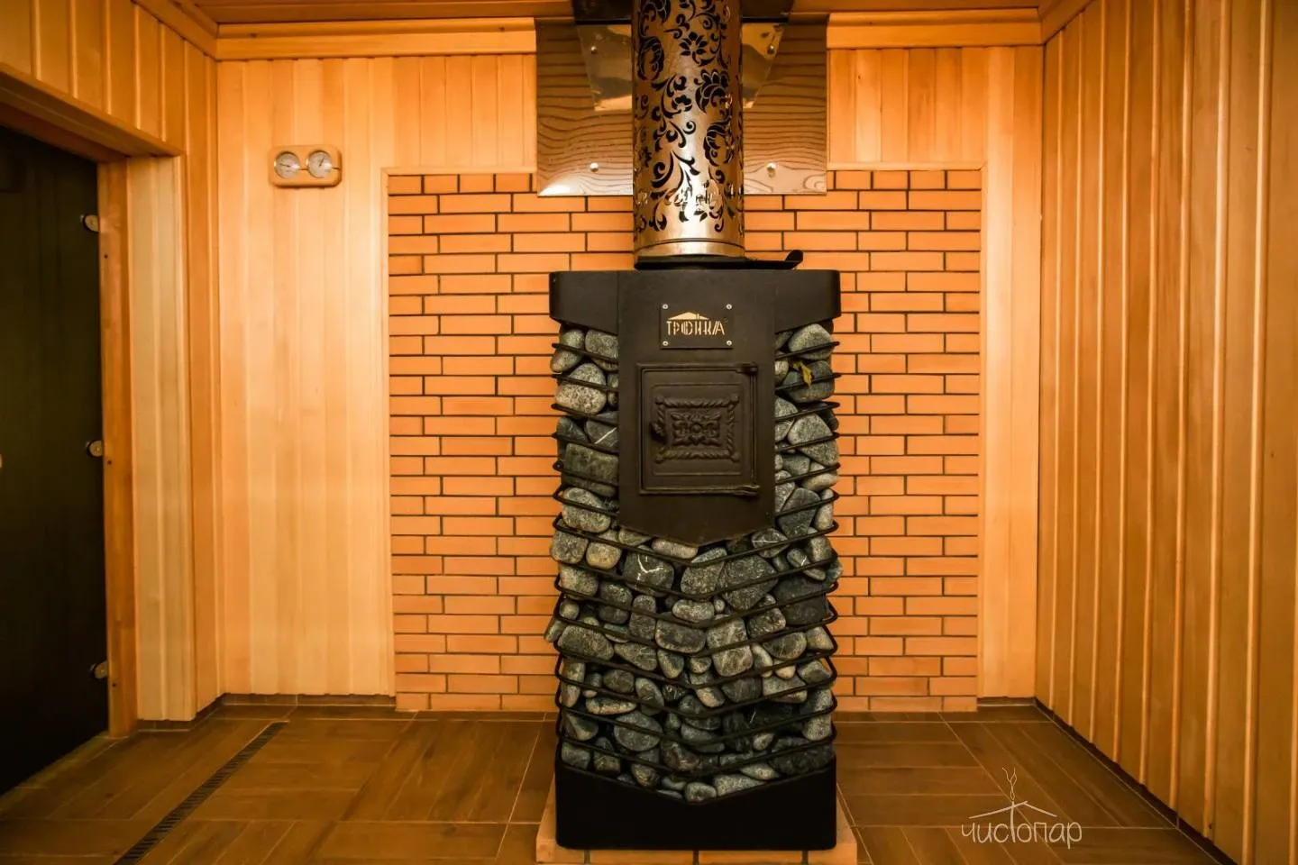 Одно из главных преимуществ нашей бани – печь на дровах каминного исполнения. В печи полудрагоценные камни жадеит. Жадеит – единственный натуральный камень, положительное воздействие которого на организм человека подтверждено научными исследованиями.