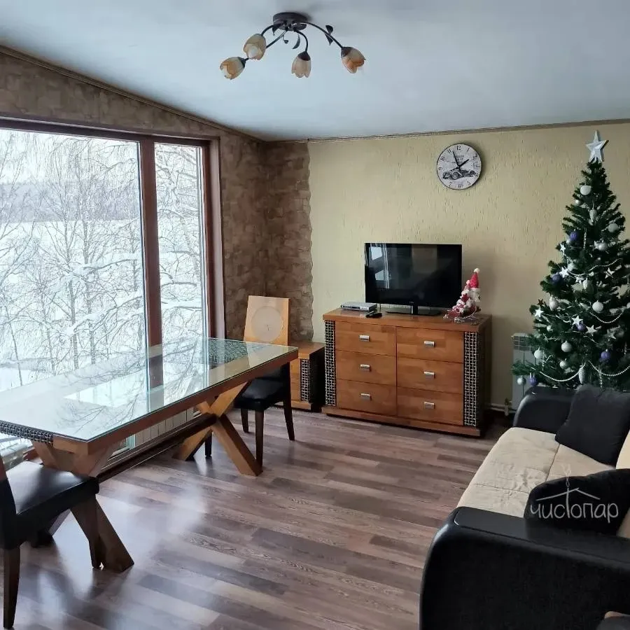 Дом со всеми удобствами. В доме три спальни: в одной - одна двуспальная кровать, в двух других - по две односпальные. Гостиная, совмещенная с кухней, панорамное окно с видом на поле и лес, туалет, душ. Рядом с домом своя зона барбекю (мангал, большой стол со скамейками, летом гамак, шезлонг). В доме есть вся необходимая посуда, столовые приборы, микроволновая печь, электрический чайник, плита на две конфорки, холодильник, фен, телевизор. По запросу предоставляется детская кроватка и стульчик для кормления.