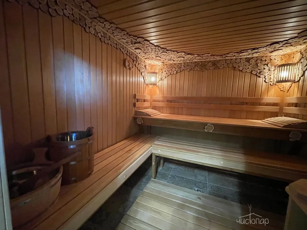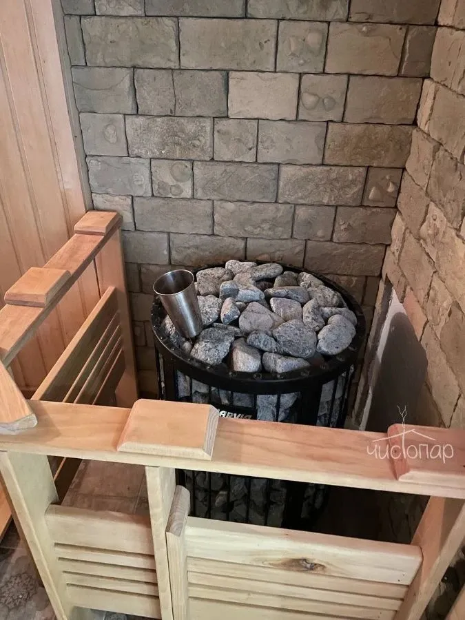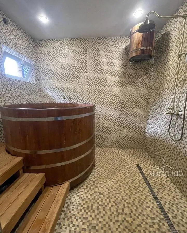 В бане можно отлично провести время с семьей или в кругу друзей. В парной расположена электропечь Harvia, которая обеспечит необходимую температуру по вашему желанию, а запах можжевельника оставит незабываемые эмоции при посещении парной! В зоне купания расположены душевые, обливное устройство для мгновенного охлаждения и кедровая купель из сибирского кедра. В комнате отдыха установлен просторный стол и лавочки для гостей, шкаф для одежды.