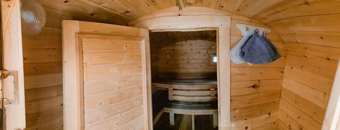 Кедровая баня вместительностью до 8 чел. Тёплый бассейн зимой послужит термальным источником. А летом прохладная вода охладит и взбодрит. В бане имеется обливное устройство.