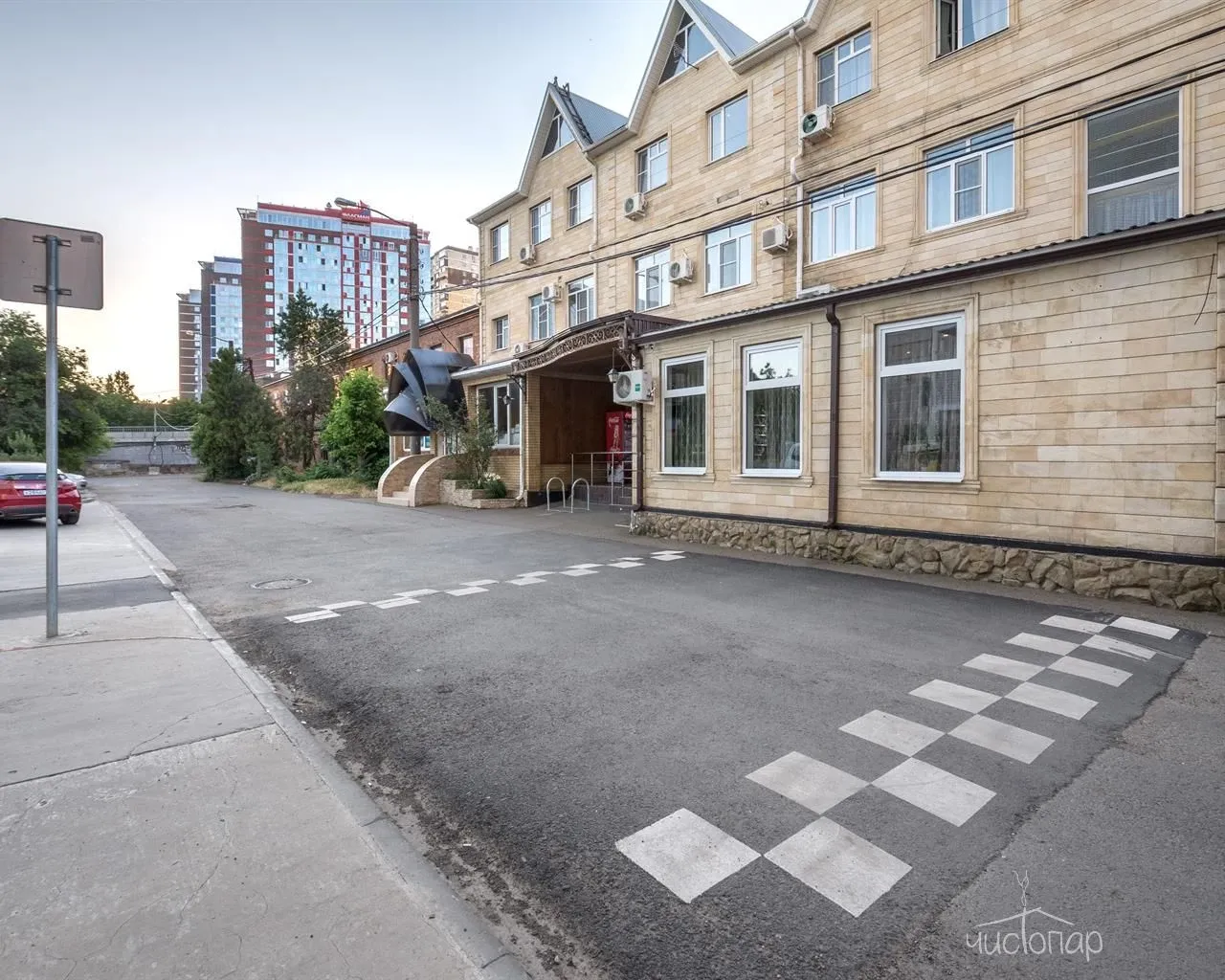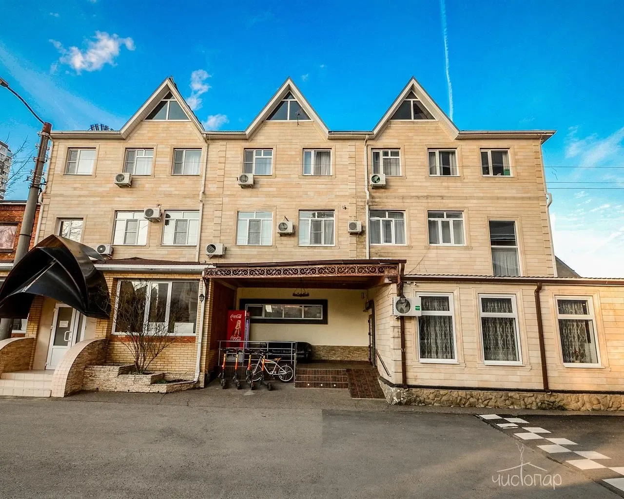 Margaret Rose - небольшой отель с большим номерным фондом в центре Краснодара. Несмотря на центральное расположение, данный район довольно тихий и уютный, огражденный от основной проезжей части небольшим жилым кварталом. На территории отеля есть большая Русская баня на дровах с жаркой парилкой и прохладным бассейном. Зал для отдыха гостей (до 20 человек) оборудован большим столом для трапезы, холодильником, микроволновкой, мультимедиа. Развлечения: аэрохоккей, настольный футбол, настольные игры