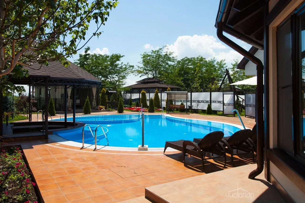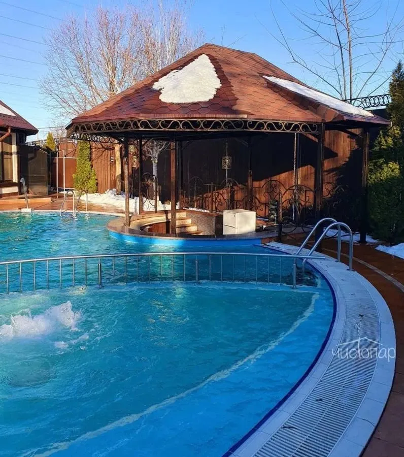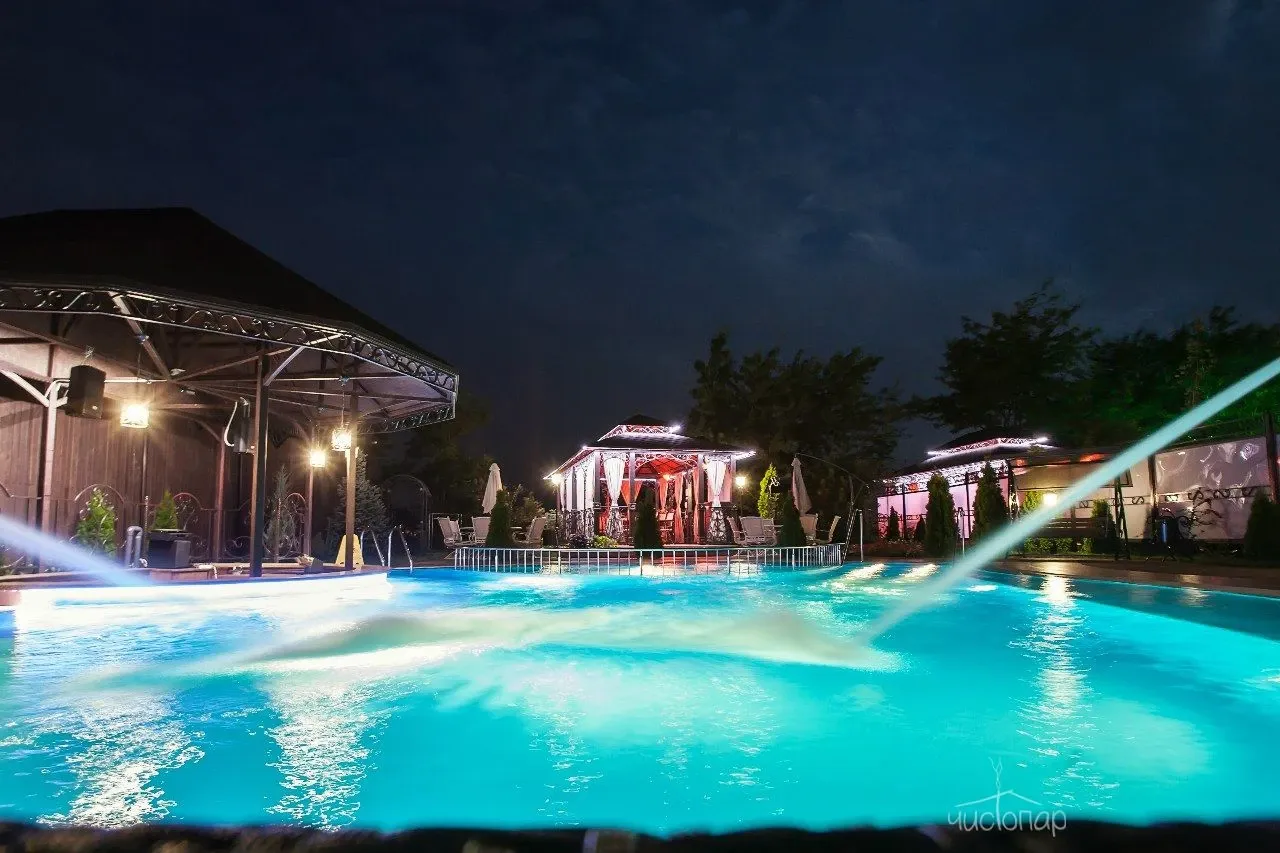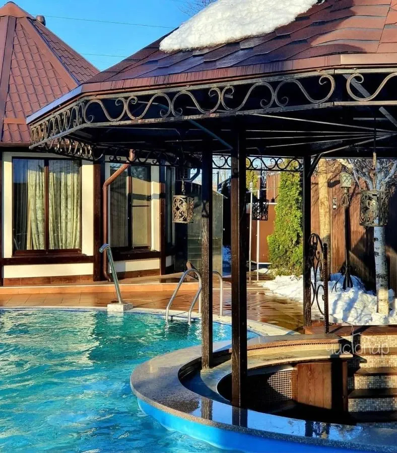 Аренда термы "ВОСТОРГ"В стоимость аренды термы "Восторг" входит пользование всей приватной территорией на берегу Кубани, с коттеджем, беседкой и мангалом, открытым бассейном (в зимний период не подогревается, используется в качестве купели). Беседка оснащена плотными шторами, инфракрасными лампами для обогрева, а также форсунками-туманообразователями.