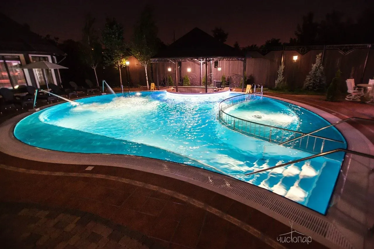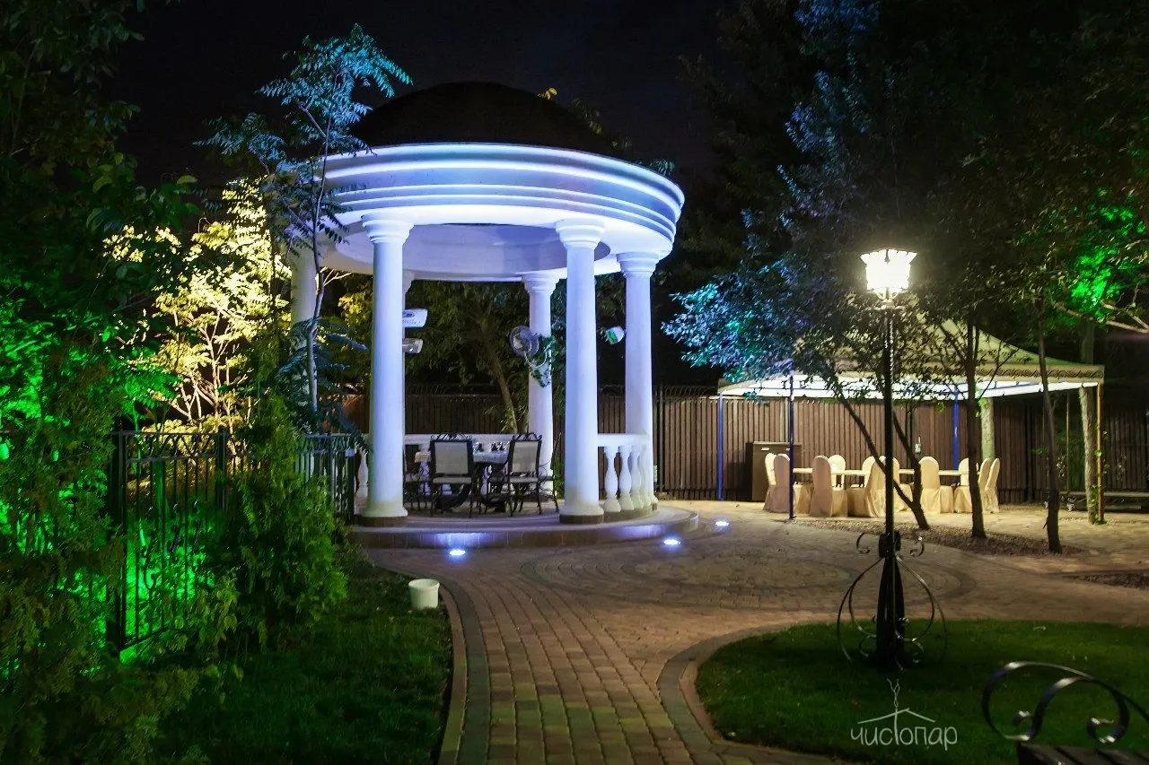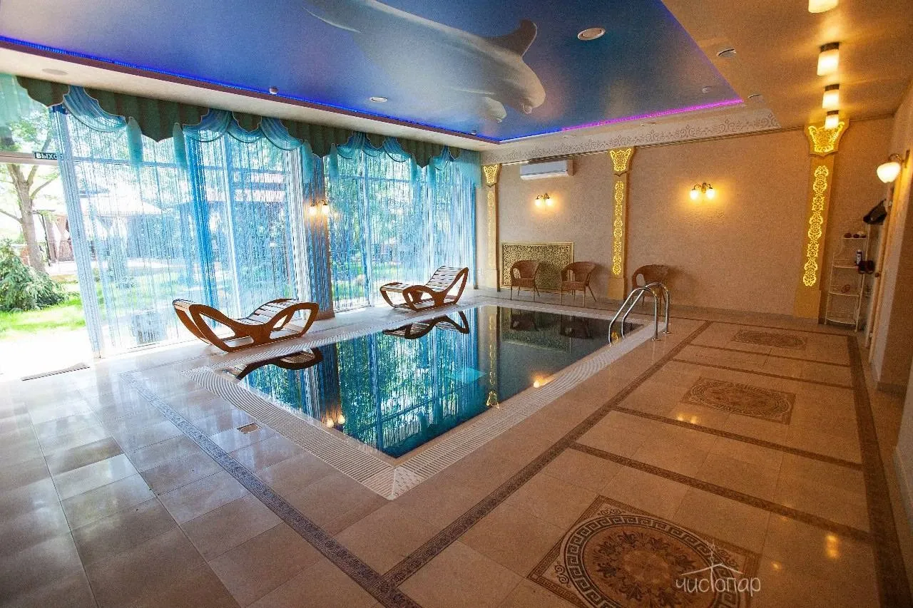 Аренда термы "ВОСТОРГ"В стоимость аренды термы "Восторг" входит пользование всей приватной территорией на берегу Кубани, с коттеджем, беседкой и мангалом, открытым бассейном (в зимний период не подогревается, используется в качестве купели). Беседка оснащена плотными шторами, инфракрасными лампами для обогрева, а также форсунками-туманообразователями.