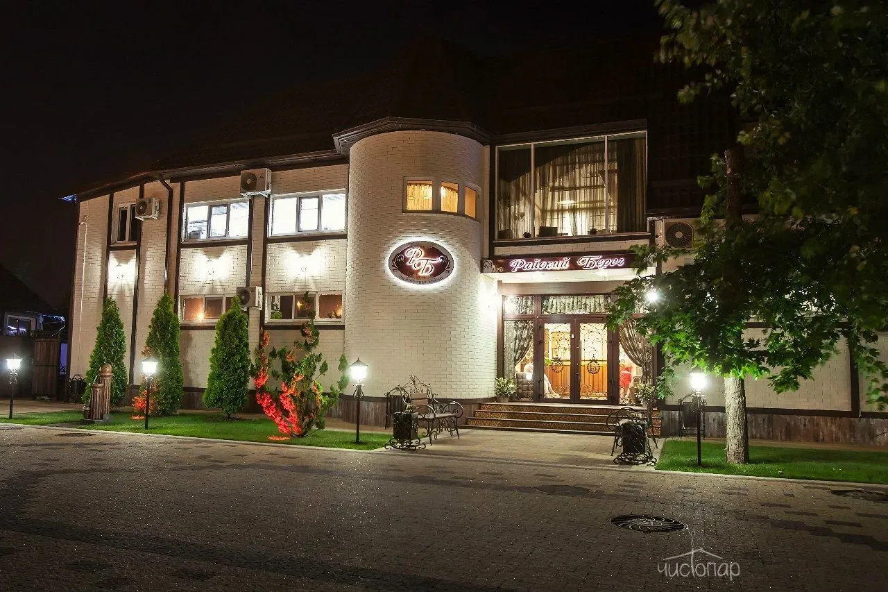 Красивая природа, берег Кубани, при этом комфорт, обстановка элитарности и приватности, расположение в черте Краснодара, в экологически благополучной, западной его части, обширные возможности для самых различных SPA - вот то, чем выделяется комплекс РАЙСКИЙ БЕРЕГ среди других мест отдыха, оздоровления и проведения досуга!
