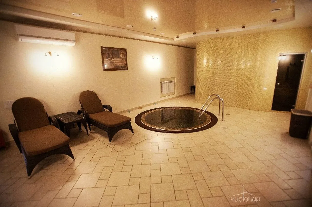 В коттедже есть русская баня на дровах, "душ впечатлений" с мелкодисперсным распылением холодной воды, массажный кабинет, раздевалк, закрытая веранда с мини-кухней, телевизором и кондиционером. Имеется спа-услуга "кедровая бочка" на открытом воздухе с тёплой или холодной водой.