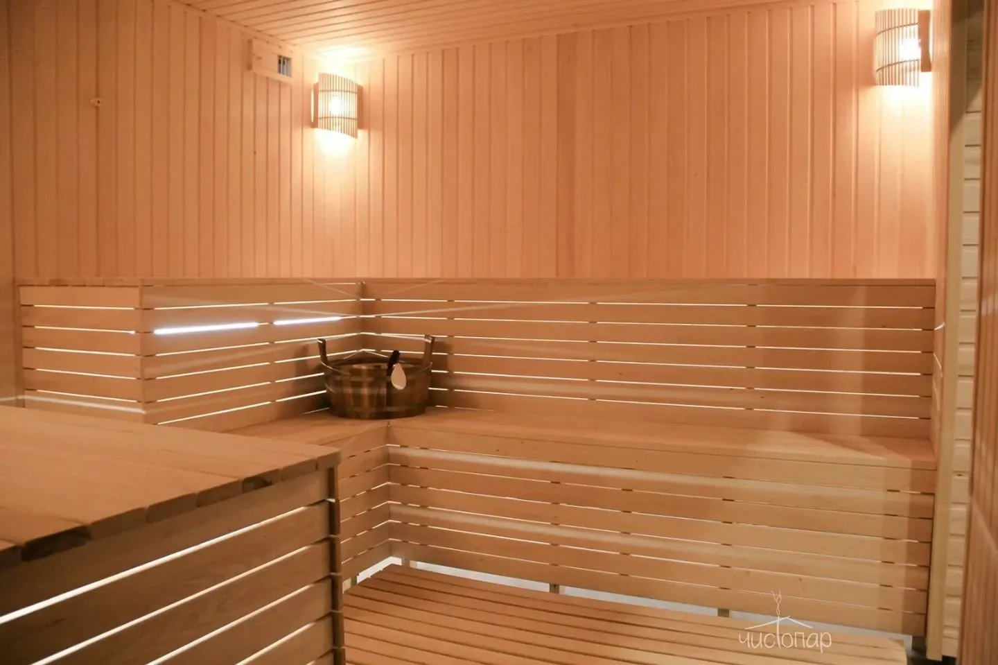 Банный комплекс клуба включает в себя 6 парных с панорамным видом на водохранилище и террасой, а также горячими чанами, мангалами и уютными lounge-зонами с большим обеденным столом и кухней.