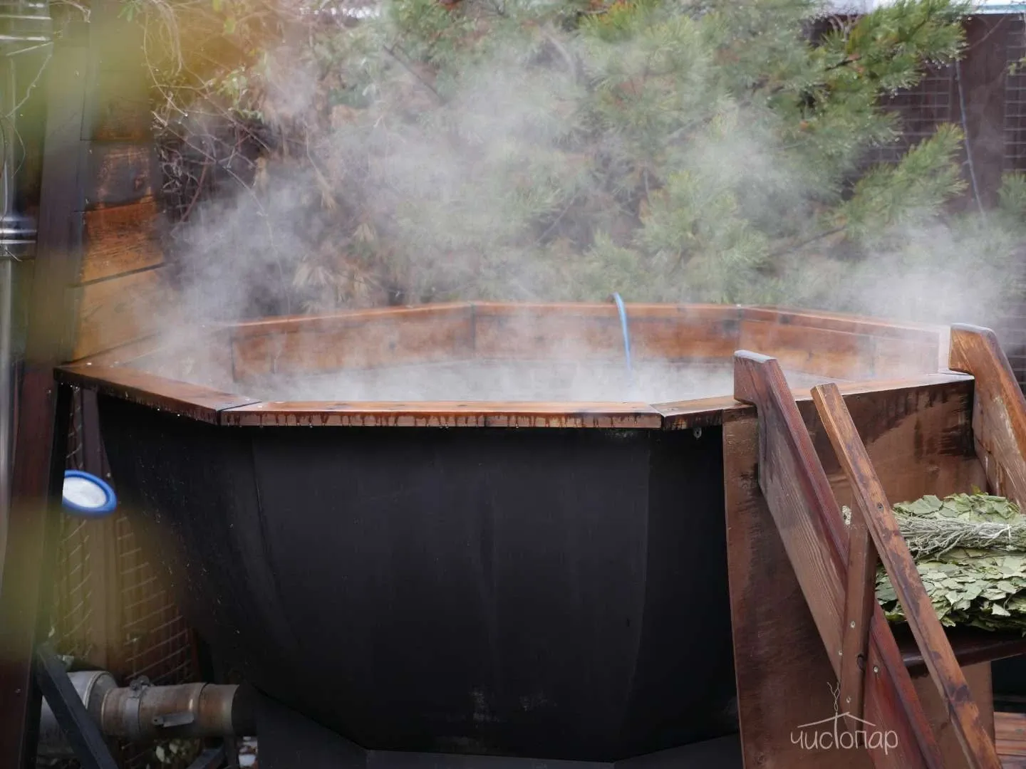 - Отдых в чане под открытым небом с ароматами травами и фруктами.