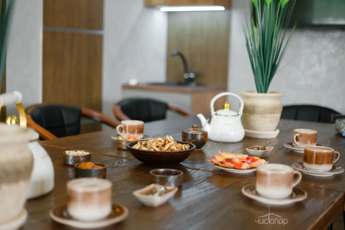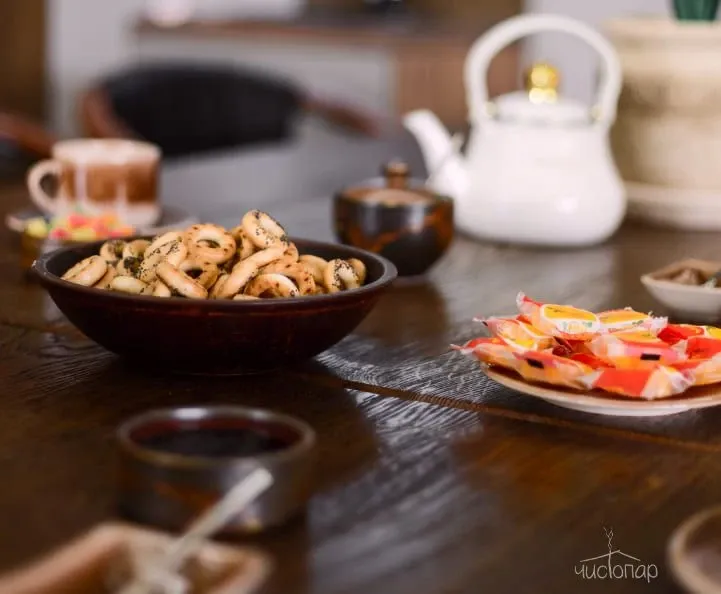 Травяной чай, сладости в подарок.