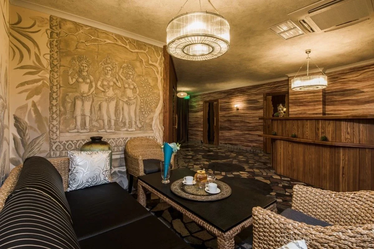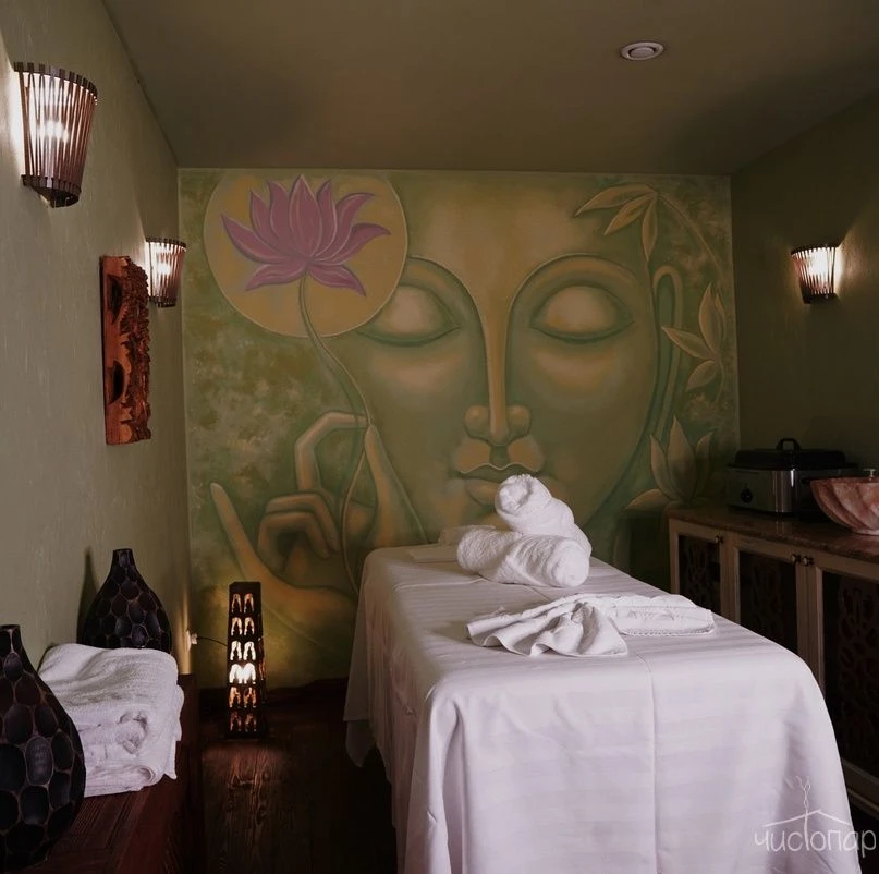 Разнообразие процедур: различные уходы для тела и лица, массажи, соляная комната, хаммам, солярий, фитобочка, аюрведические ритуалы.