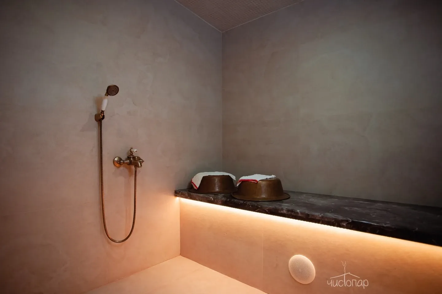 За 105 лет банный комплекс сильно эволюционировал. Сегодня – это 700 квадратных метров, два банных разряда, три русских парных и один хаммам, три процедурных кабинета, 52 сотрудника, из которых 12 пармастеров и пять массажистов и СПА-специалистов.
