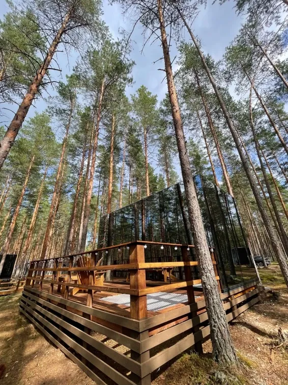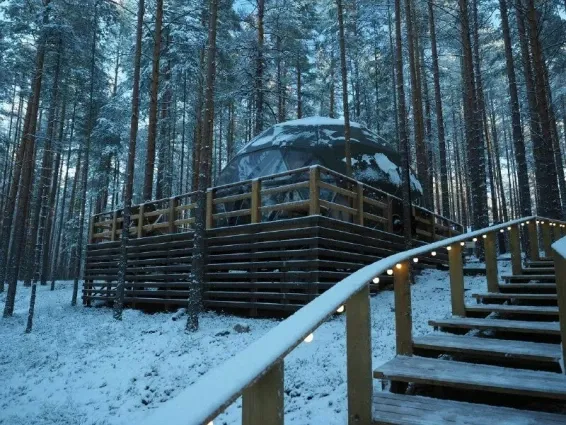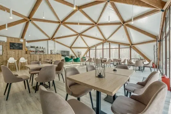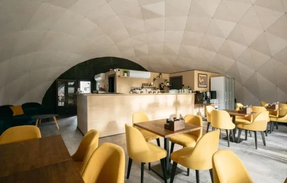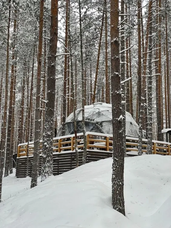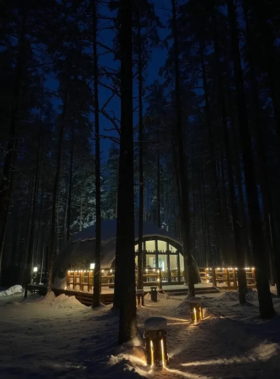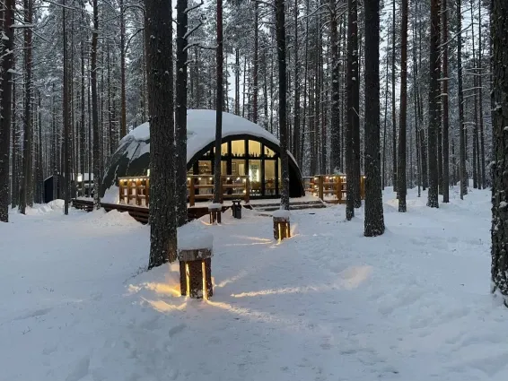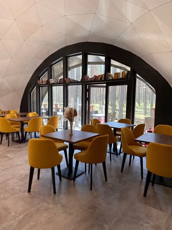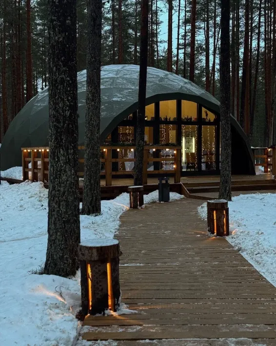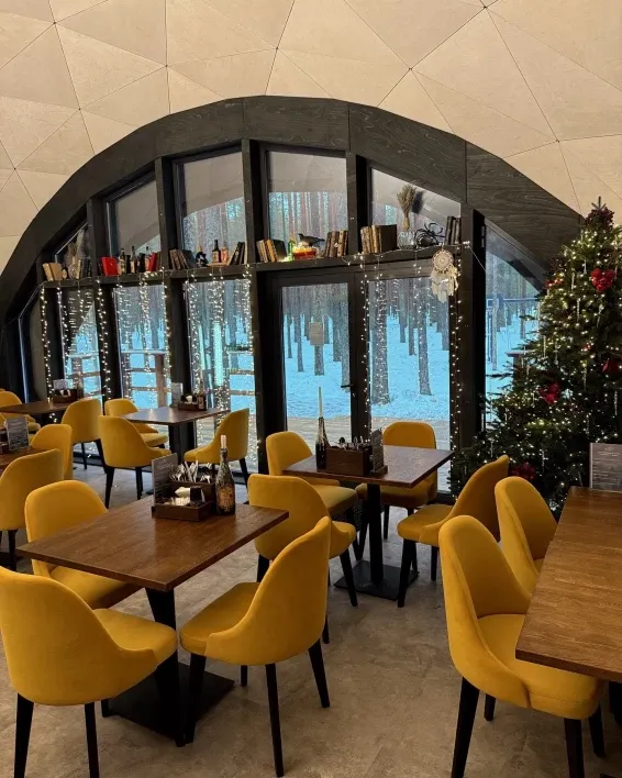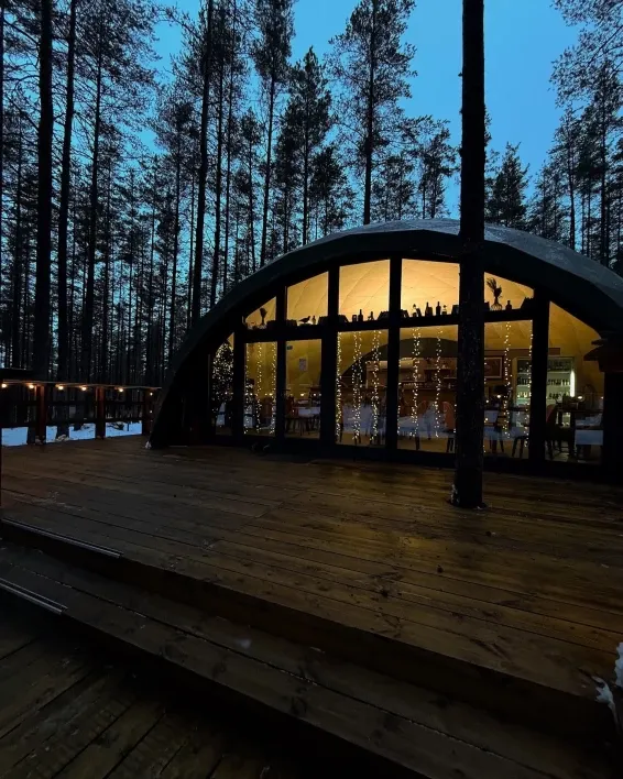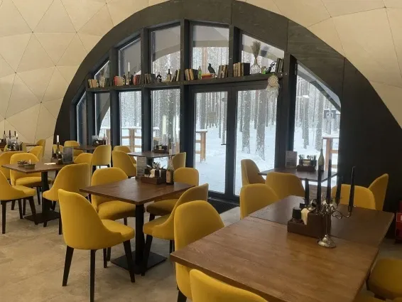 Питание гостей предусмотрено в уютном лесном кафе в панорамном куполе.