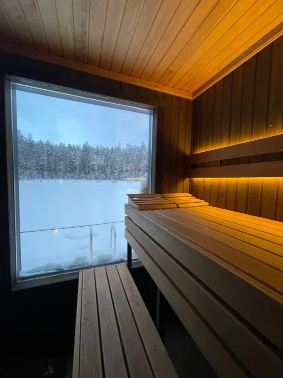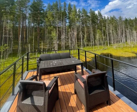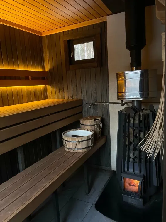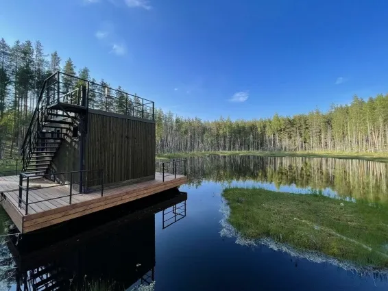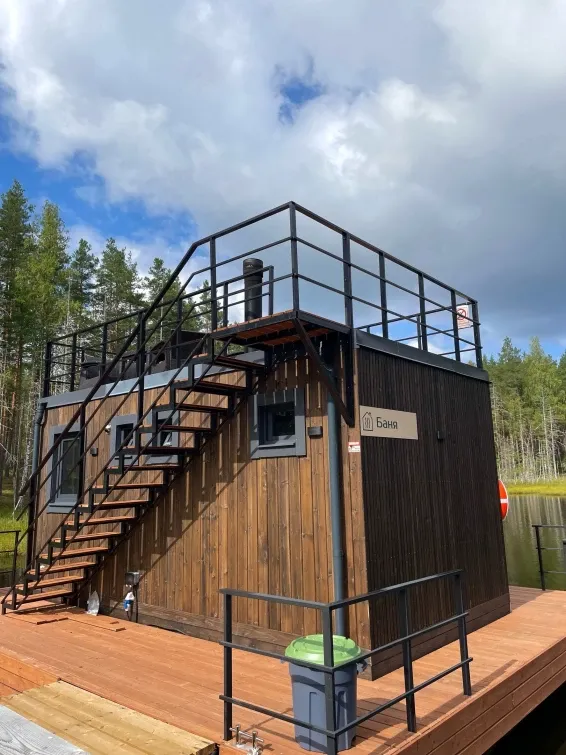 Гостей приглашают в русскую баню на воде с панорамным видом на озеро и спуском в воду. Чилаут-зона на открытой площадке на крыше.