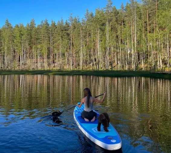 Здесь можно заняться рыбалкой, посетить баню или взять напрокат велосипед, сап-доску или лодку, чтобы изучить окрестности.