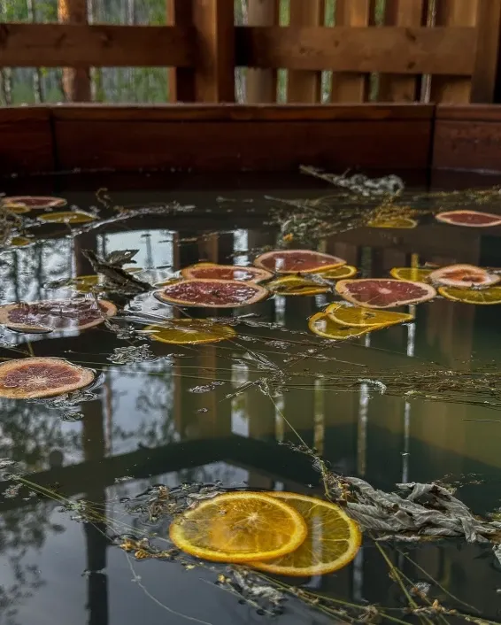 По желанию можно украсить купель целебными травами и фруктами, Стоимость данной услуги 2000 рублей.Читать далее