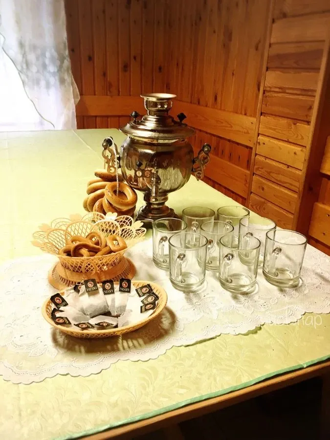 На территории базы Кот Матроскин: живописный берег озера Вишневского, чистейший лес, свежий воздух. Русская баня с парилкой на березовых дровах, настоящими вениками на берегу озера. Там можно отдохнуть дружной компанией до 12 человек, попариться, выпить чаю из самовара.