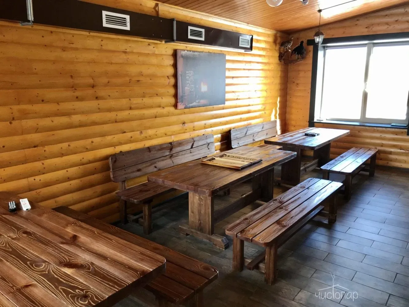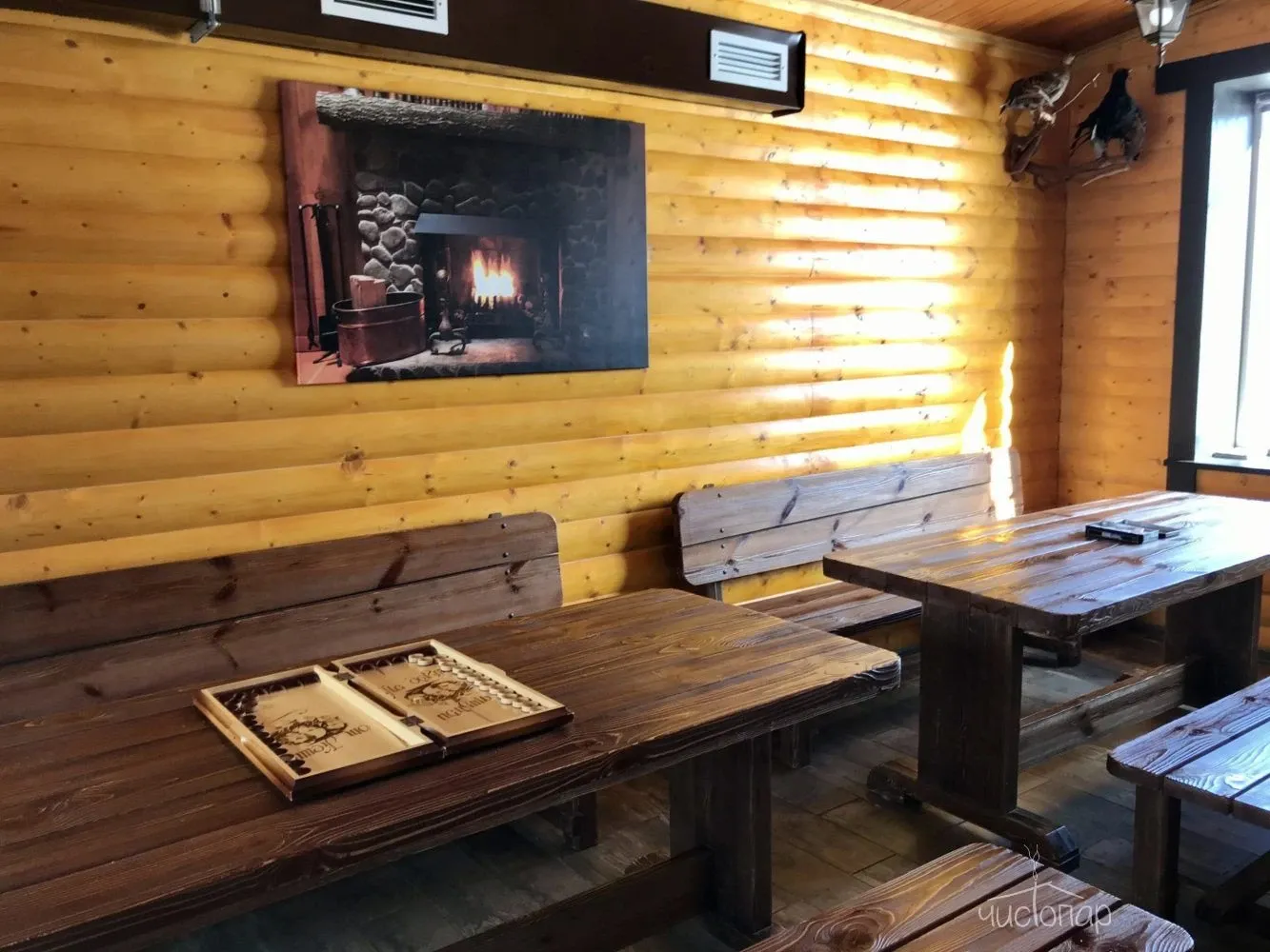 - интерьер бани в охотничьем стиле;