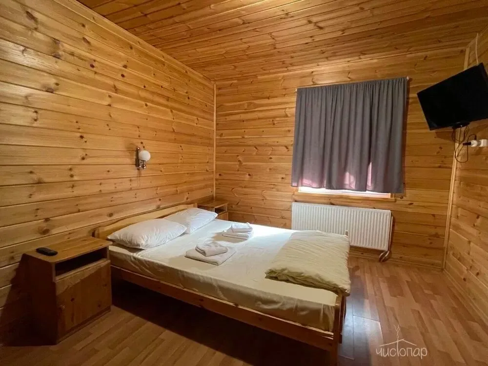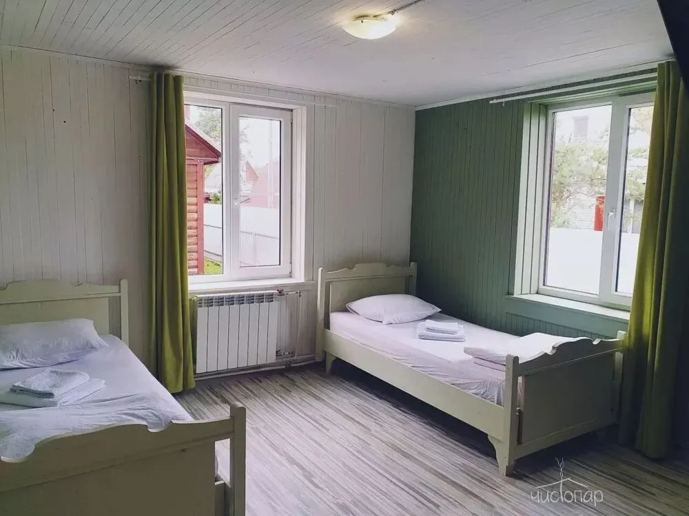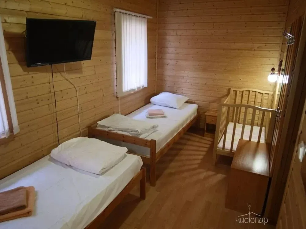 В 2-х спальнях: по 2 односпальные кровати, телевизор.