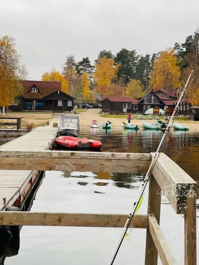 Прокат весельных лодок и лодок с мотором, катамараны, велосипеды, удочки, бадминтон, настольный теннис, футбольный, волейбольные мячи (есть площадка для футбола и волейбольная сетка) и мн.др.