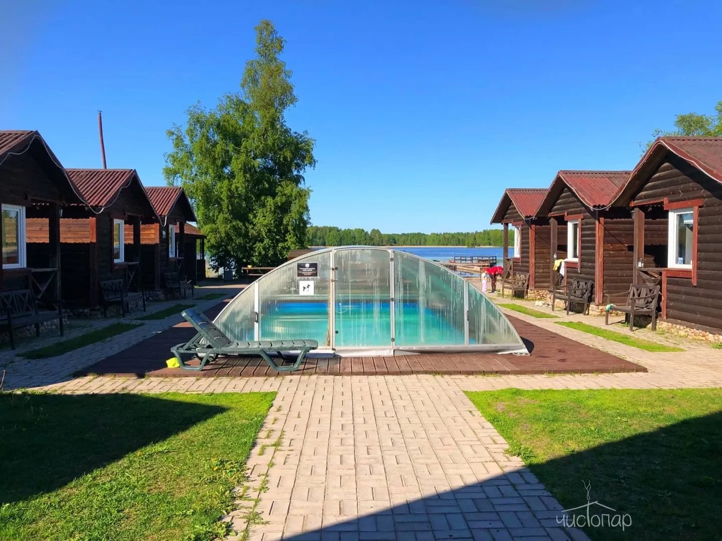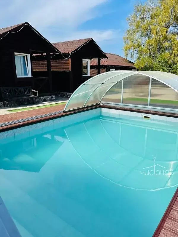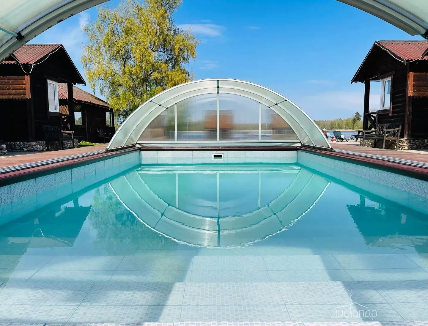 Бассейн работает круглогодично. Размер бассейна: ширина 4 м., длина 8 м., глубина около 2 м. Бассейн накрыт пластиковым куполом, температура воды около 32 градусов (зимой), 27 градусов (летом).