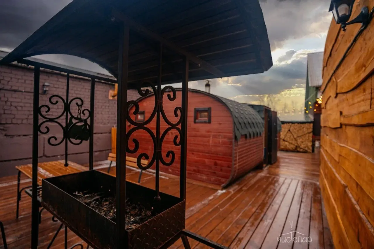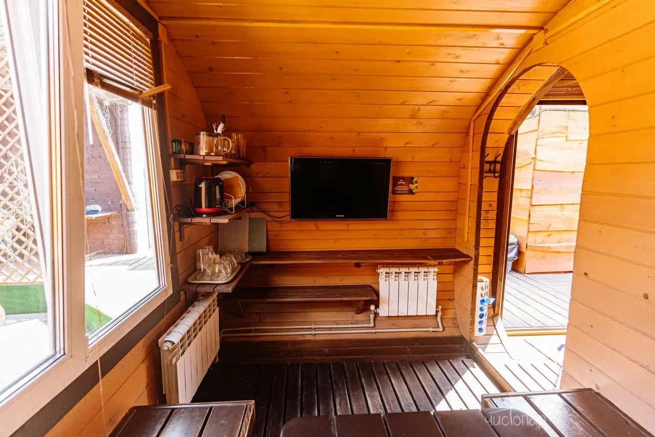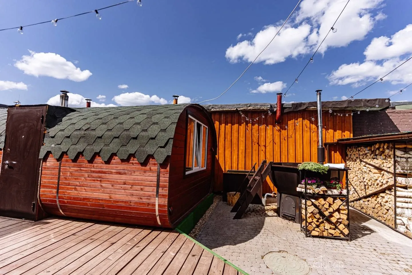 На территории так же стоит КЕДРОВАЯ БАНЯ НА ДРОВАХ с мангальной зоной, зоной для отдыха на компанию до 8 человек и банным ЧАНОМ на дровах