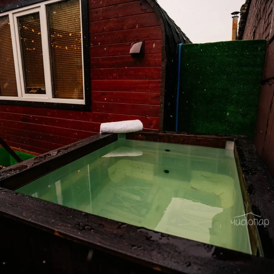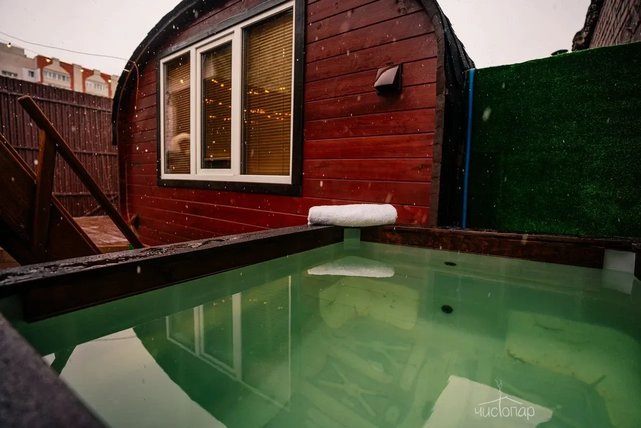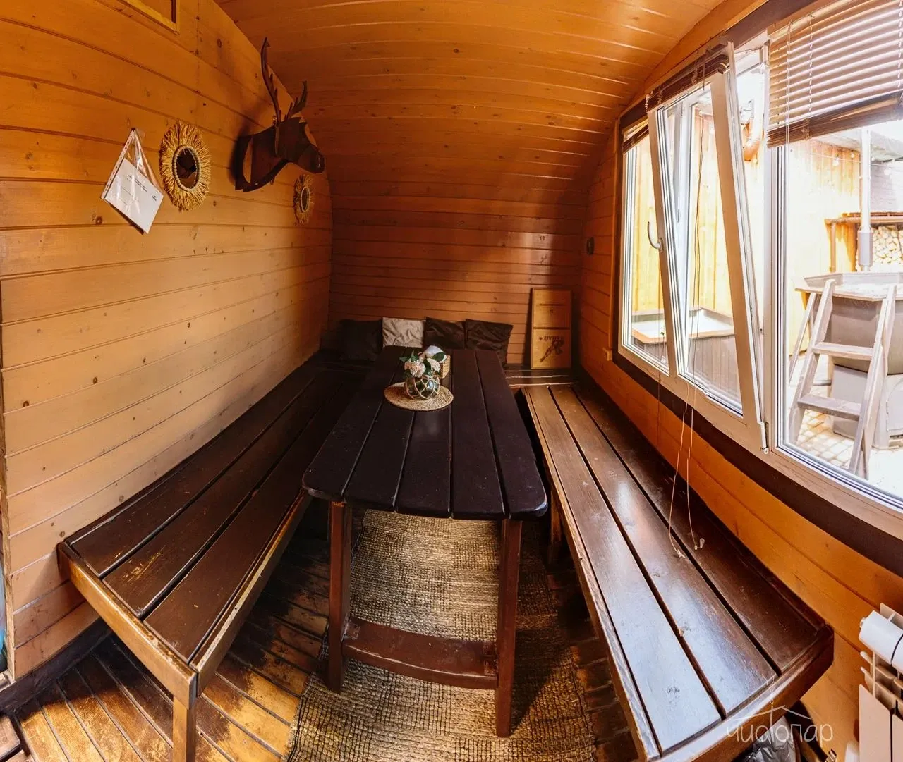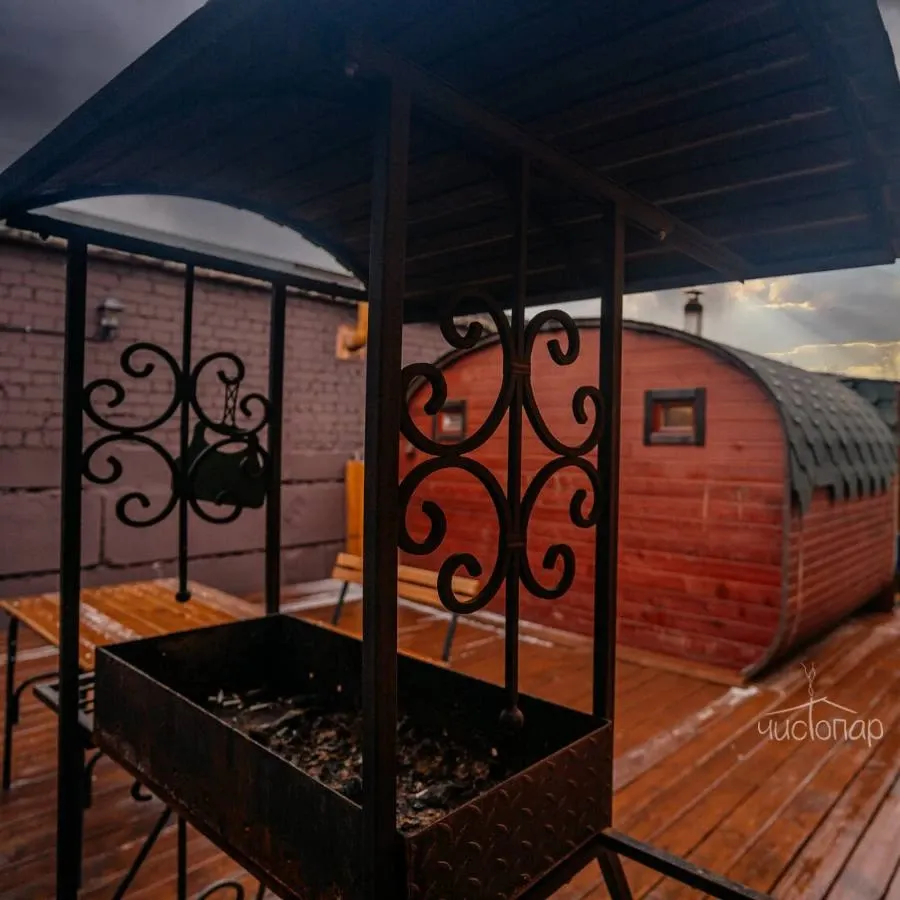 На территории так же стоит КЕДРОВАЯ БАНЯ НА ДРОВАХ с мангальной зоной, зоной для отдыха на компанию до 8 человек и банным ЧАНОМ на дровах